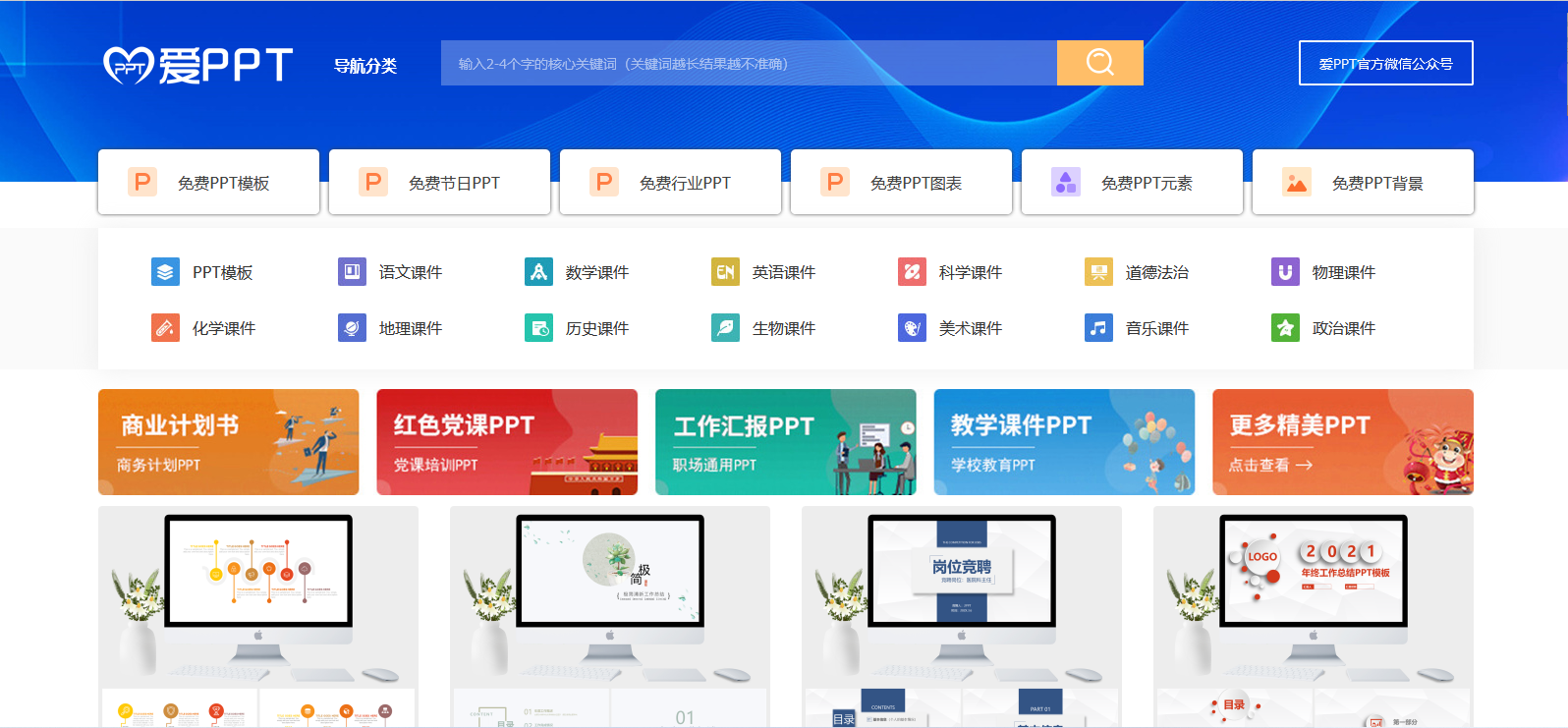 PPT素材网站,这个网站里面除了有很多高质量PPT模板以外,还有很多教学课件,九年义务教育的所有课件这里面都能下载,这妥妥的教师党福利网站,而且全部模板都能免费下载。