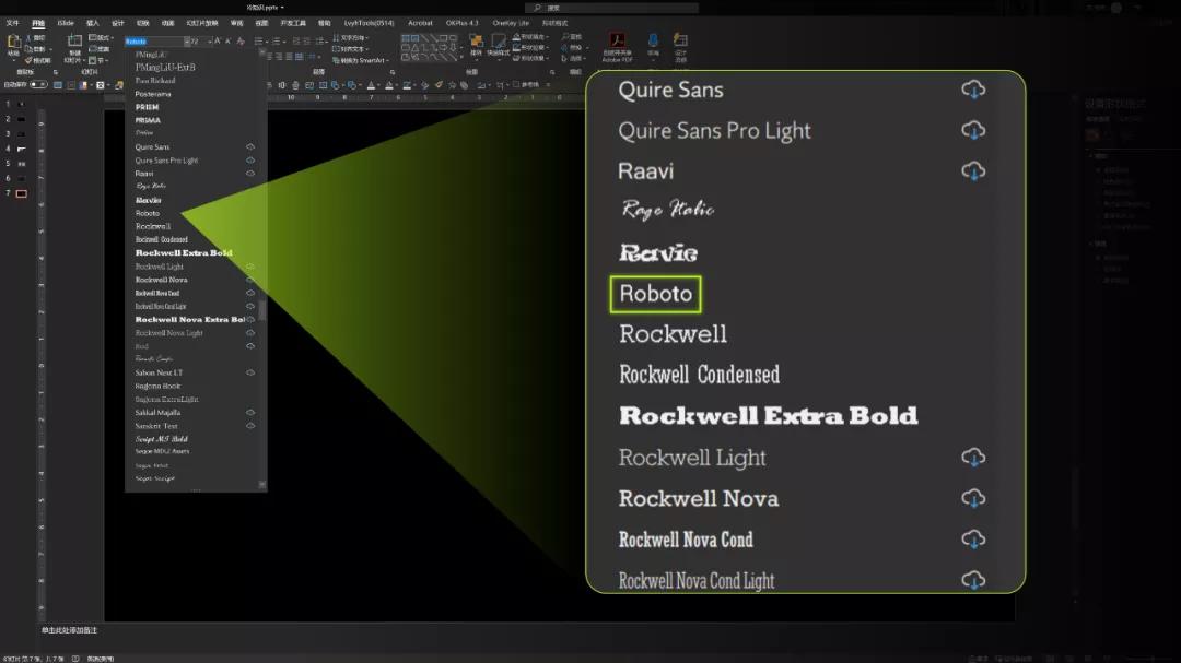 我们直接在 PPT 的字体选择栏中,输入该款字体的名称+字重尾缀即可。