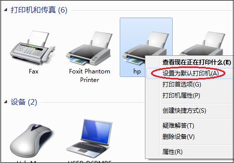 对于需要设置某一台打印机为默认打印机的,打开开始——设备和打印机——选中打印机,右键设置默认打印机勾选,如图