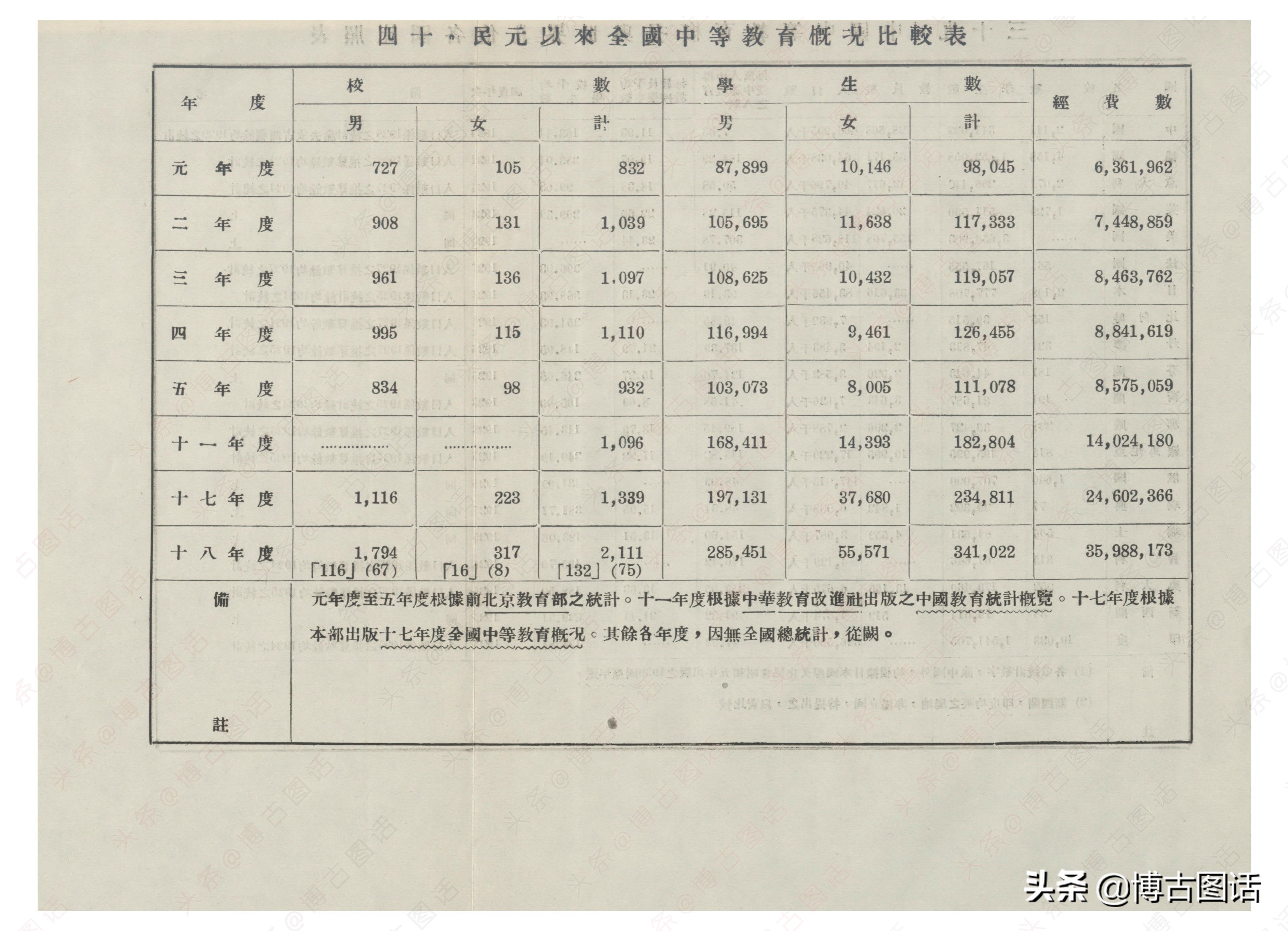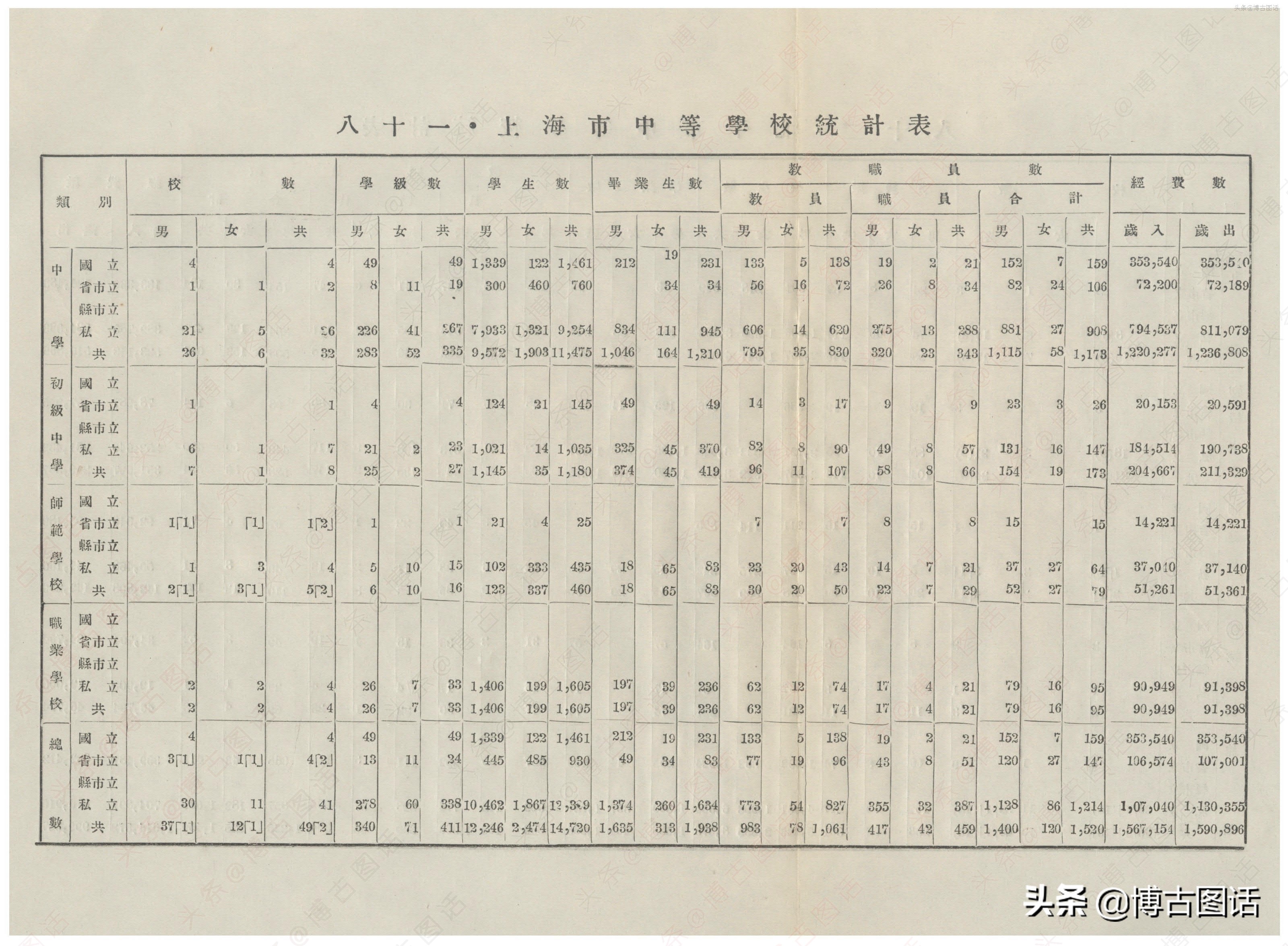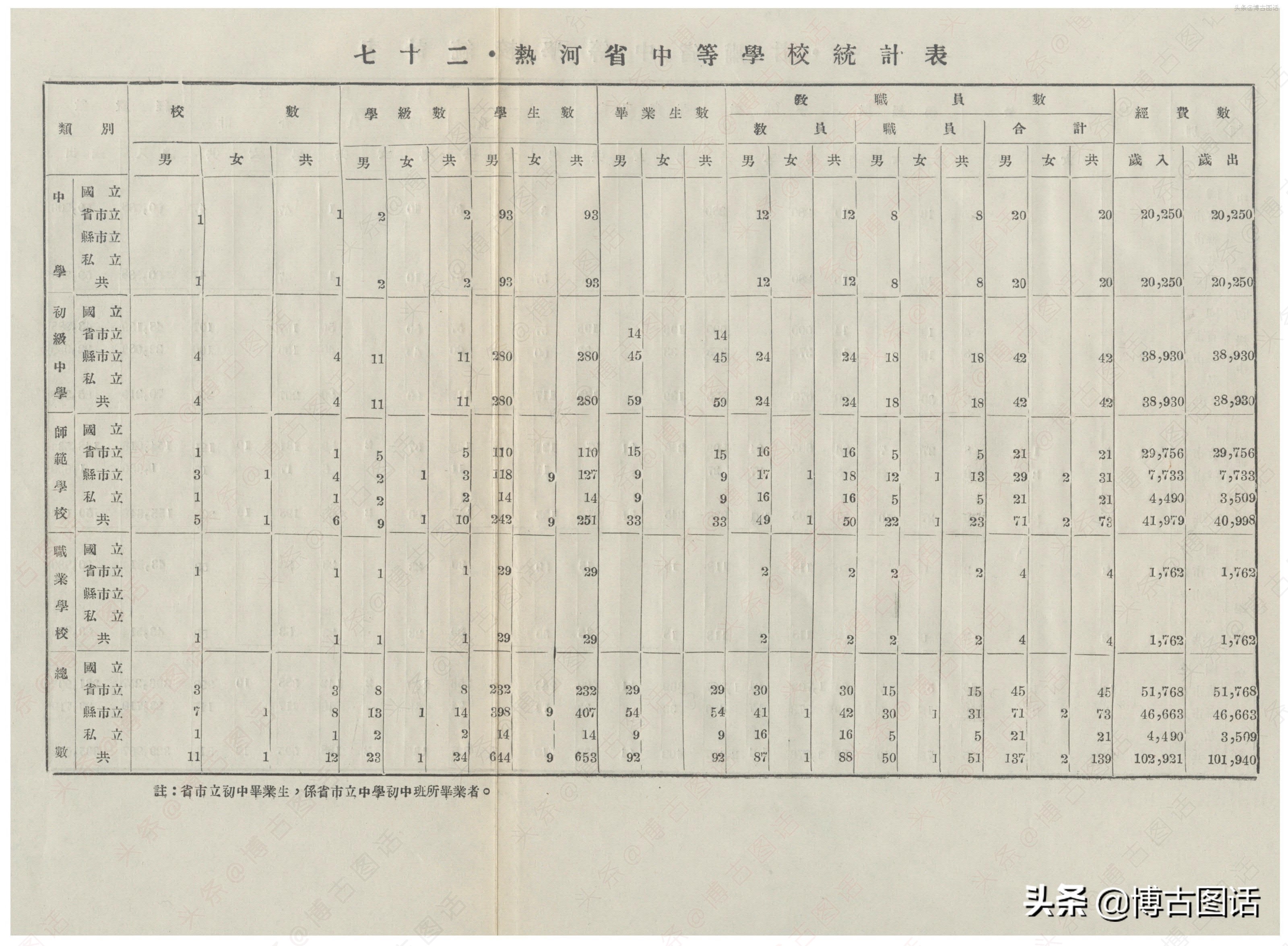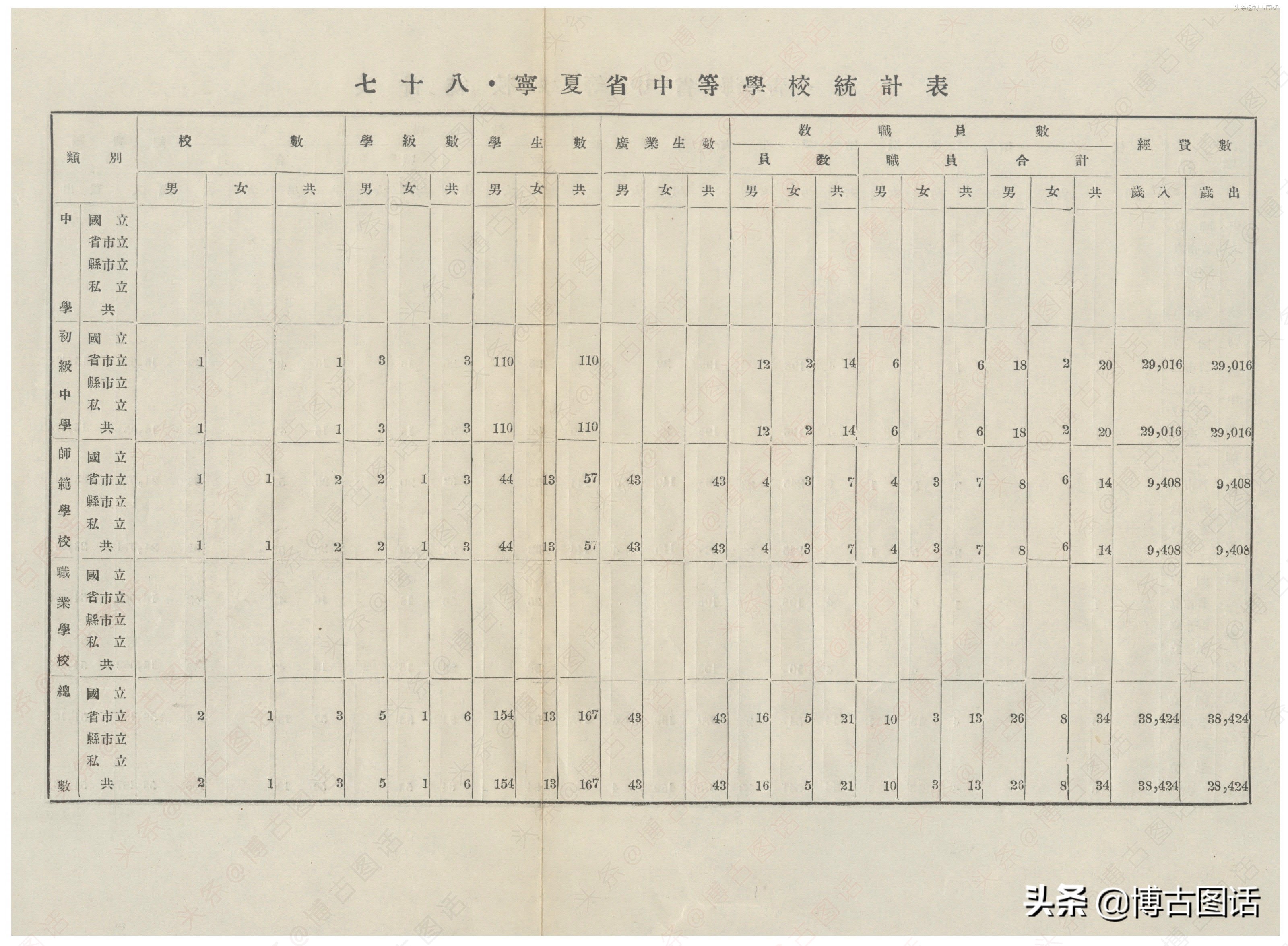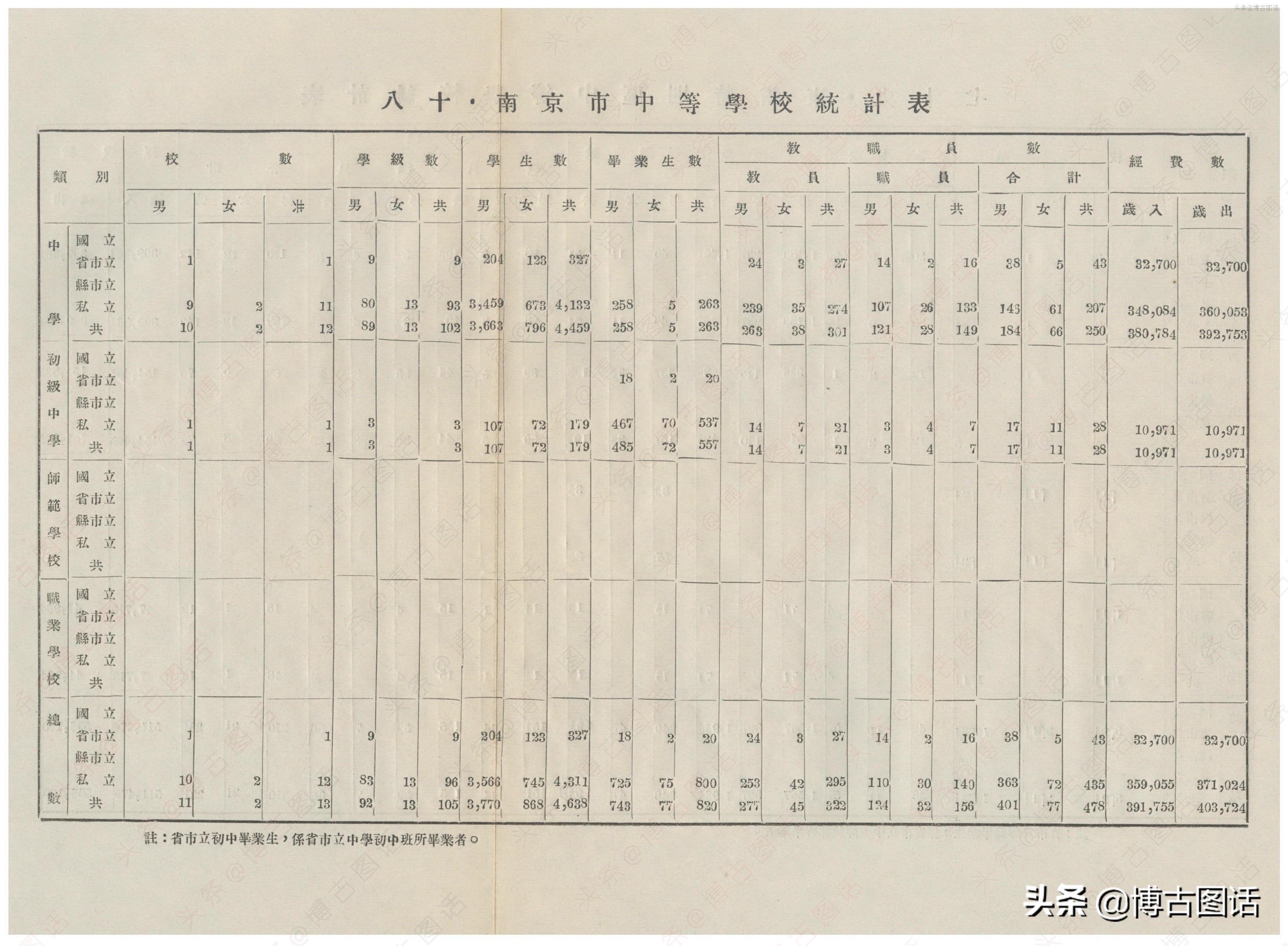 中华民国20年(1931)中学概况,在那个没有计算机的年代,前辈们的手工ppt让我五体投地。