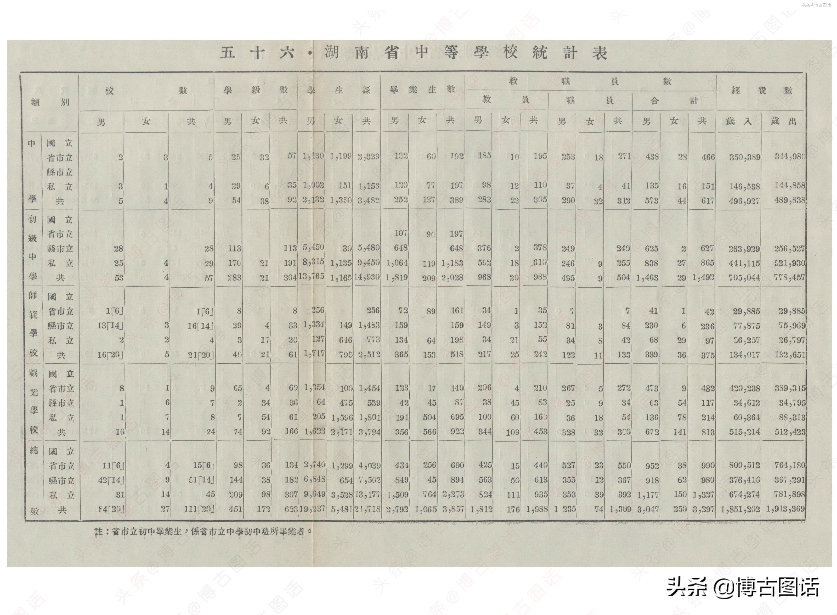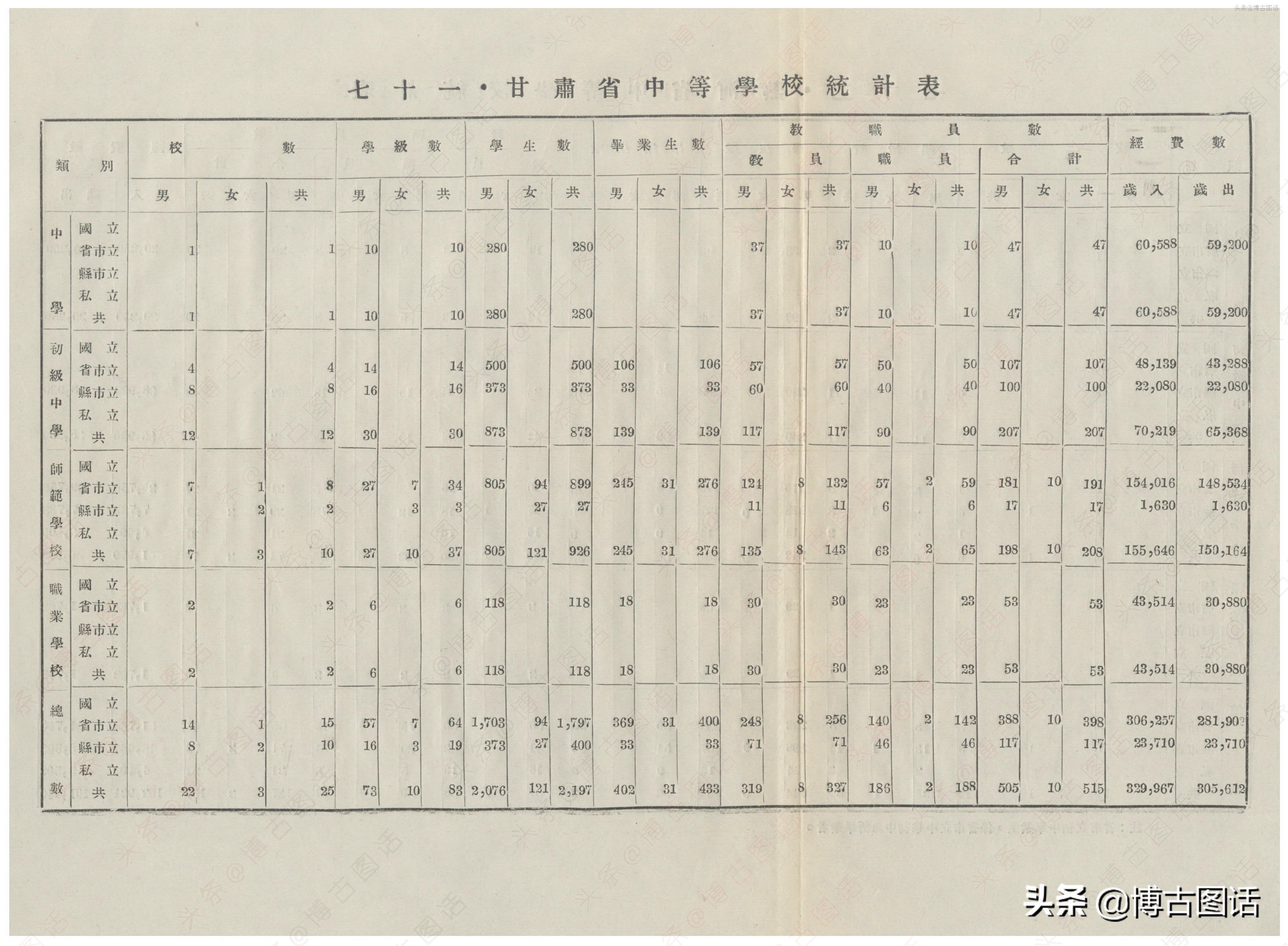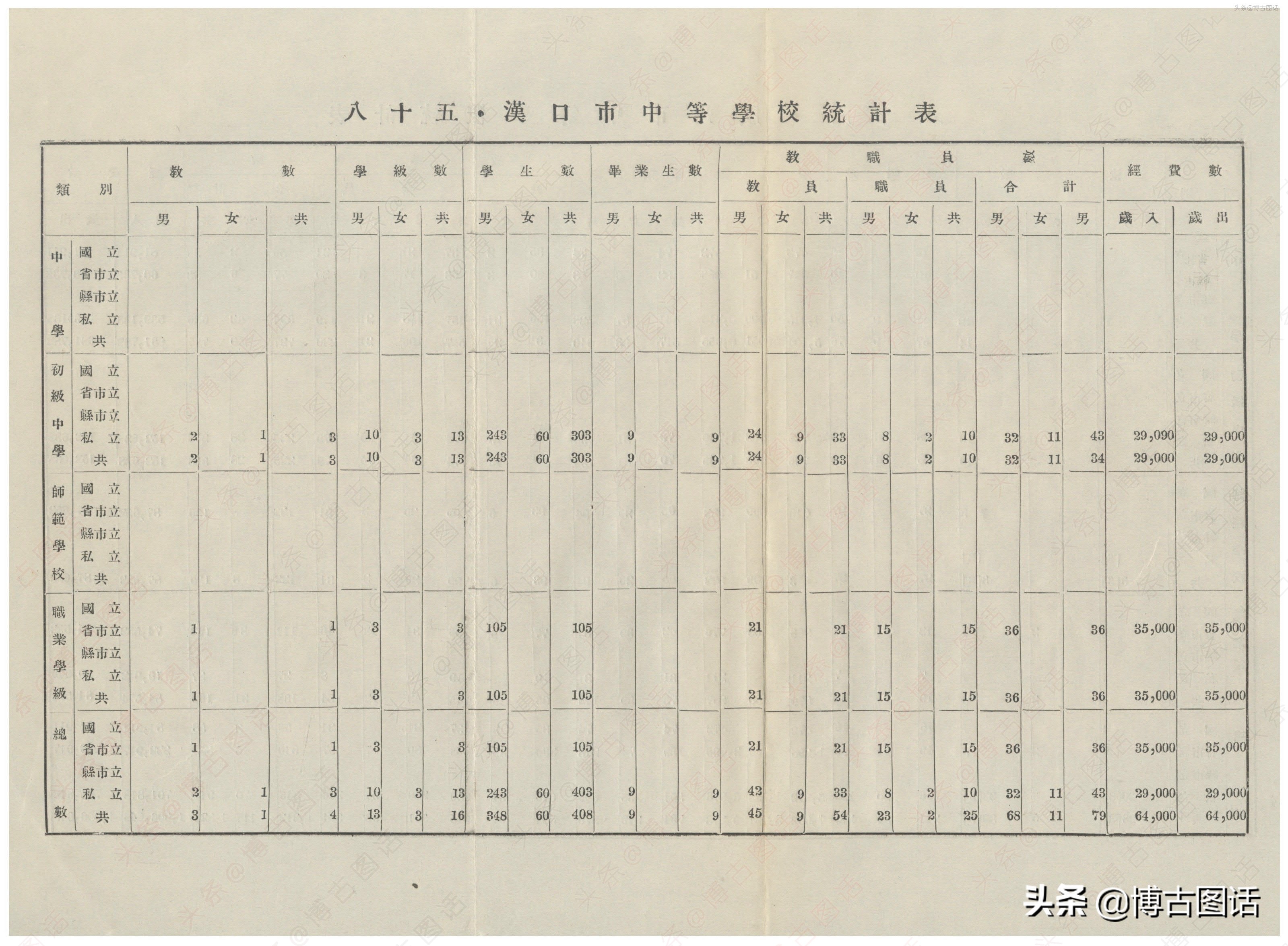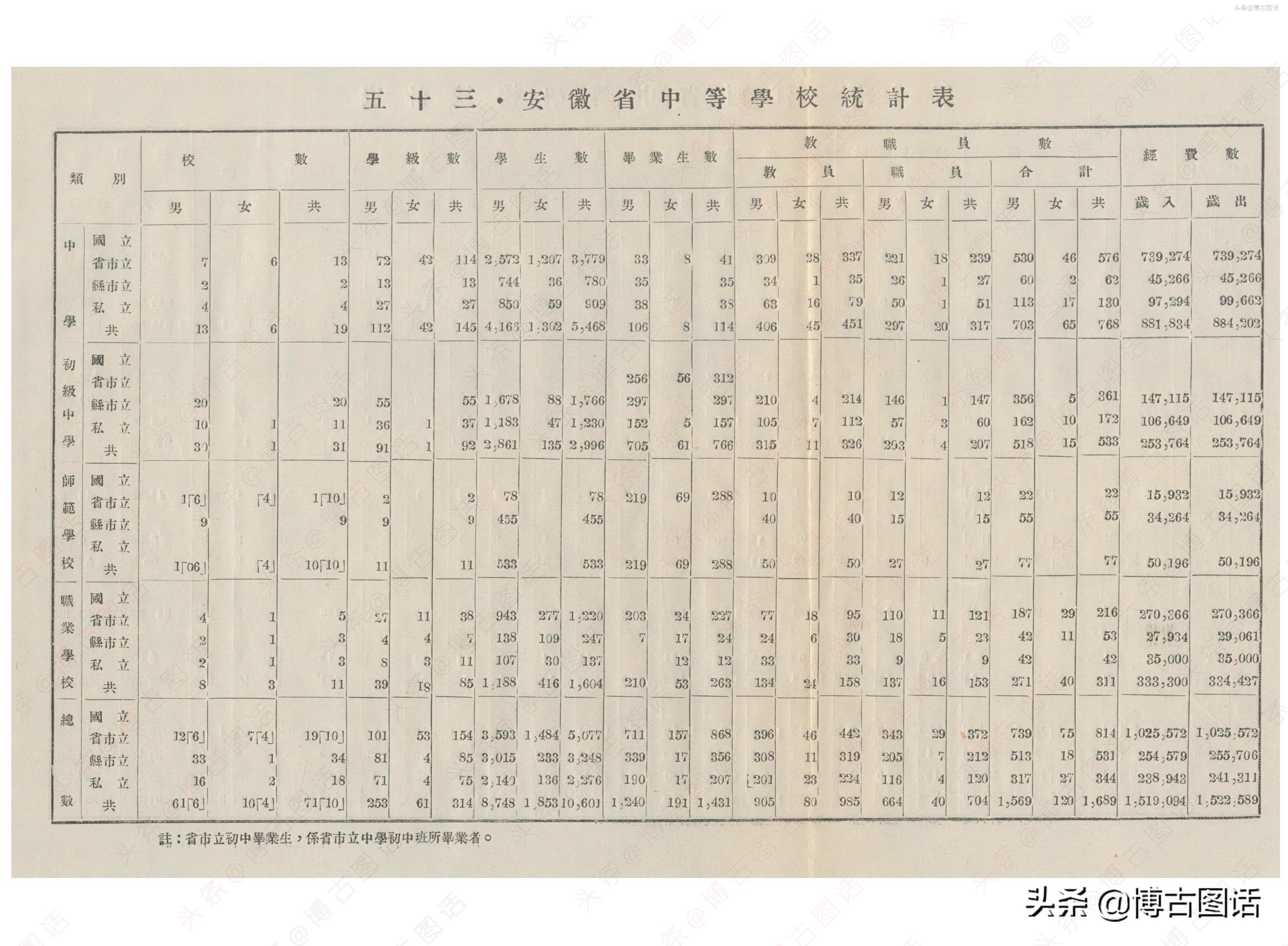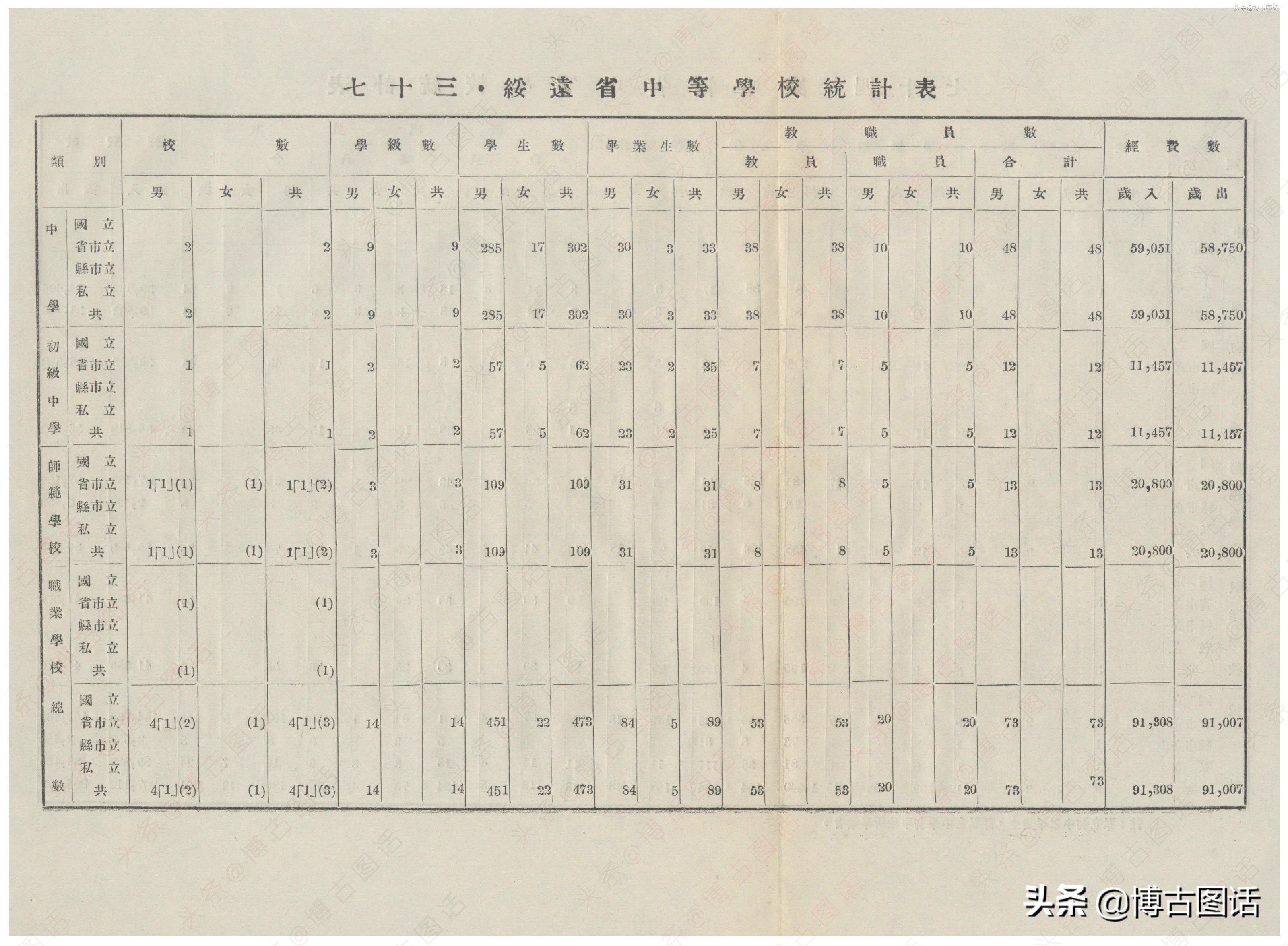 中华民国20年(1931)中学概况,在那个没有计算机的年代,前辈们的手工ppt让我五体投地。
