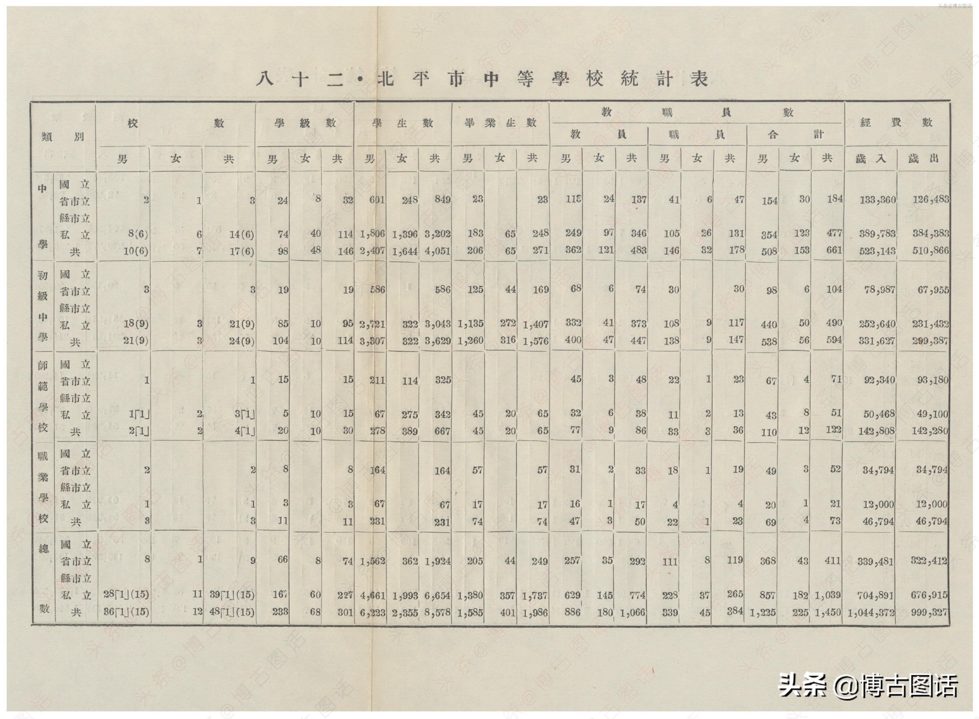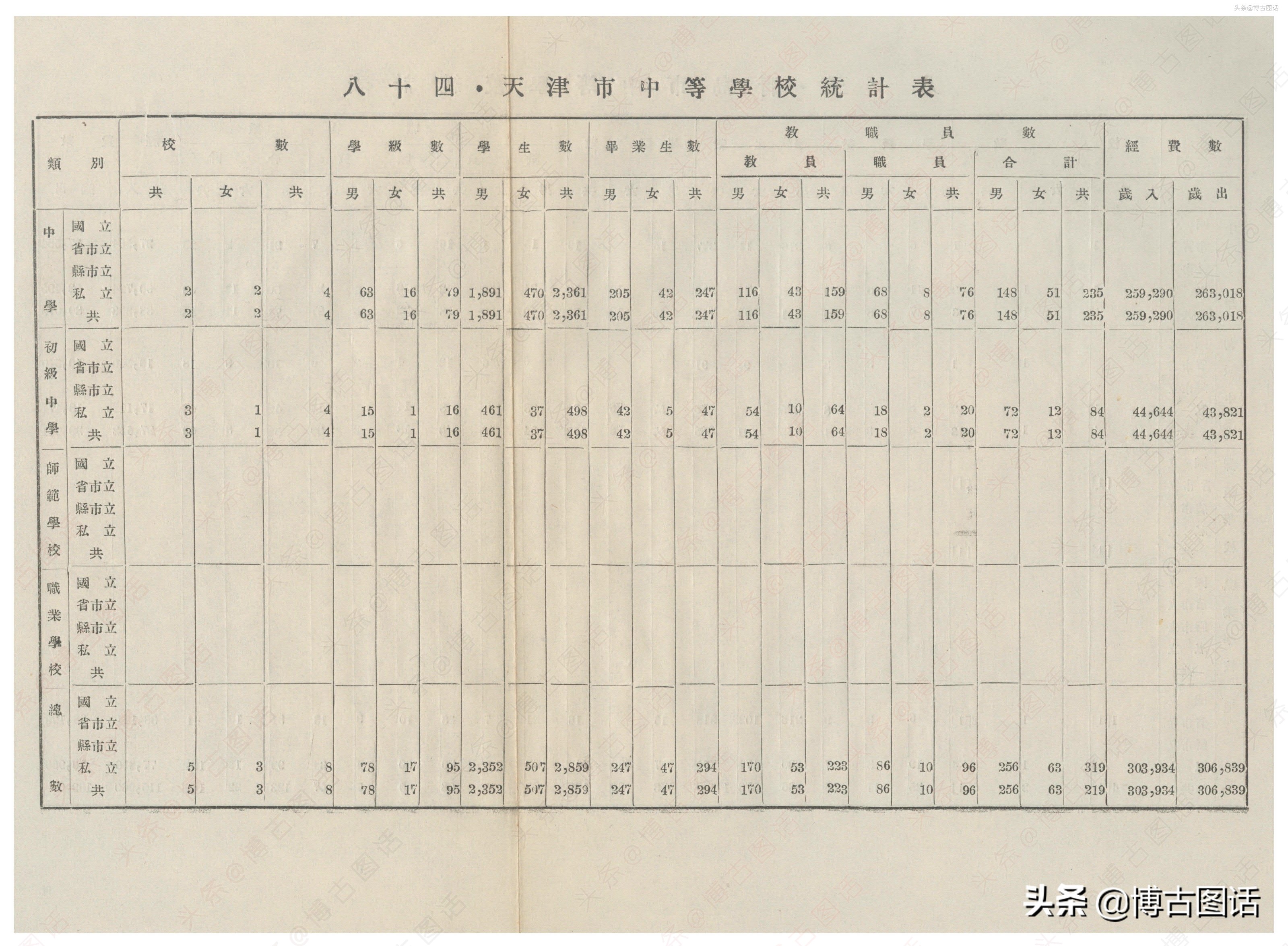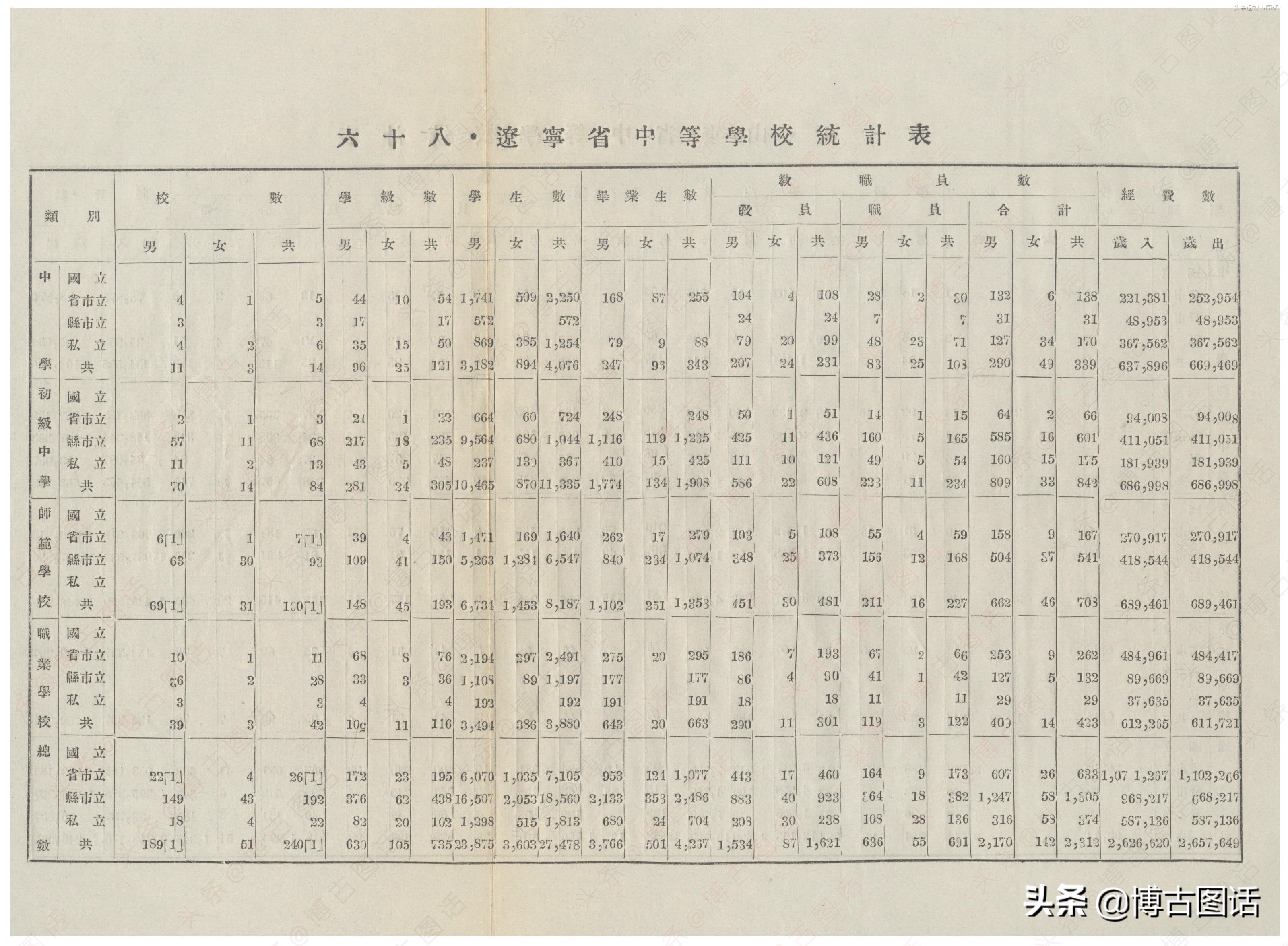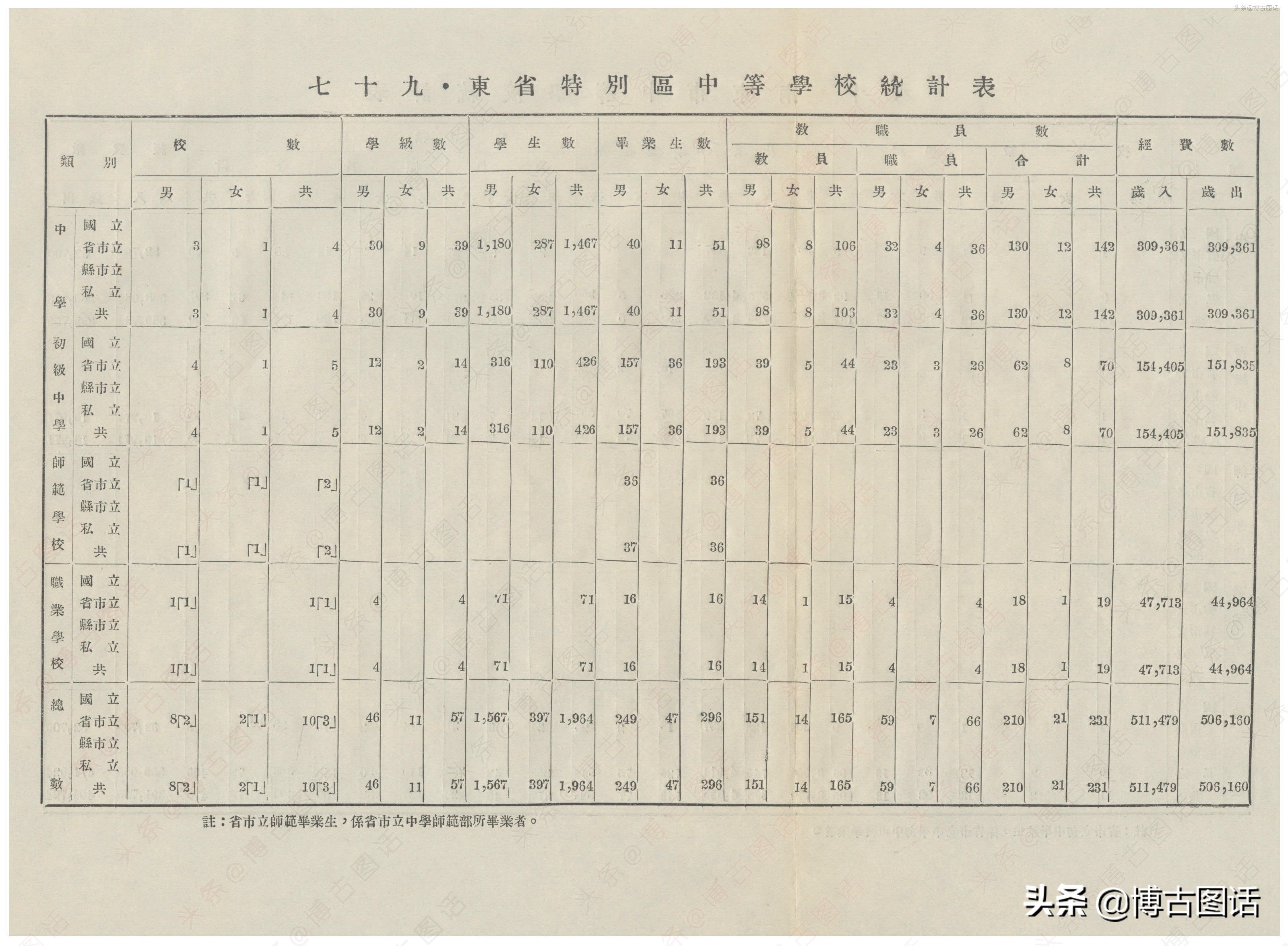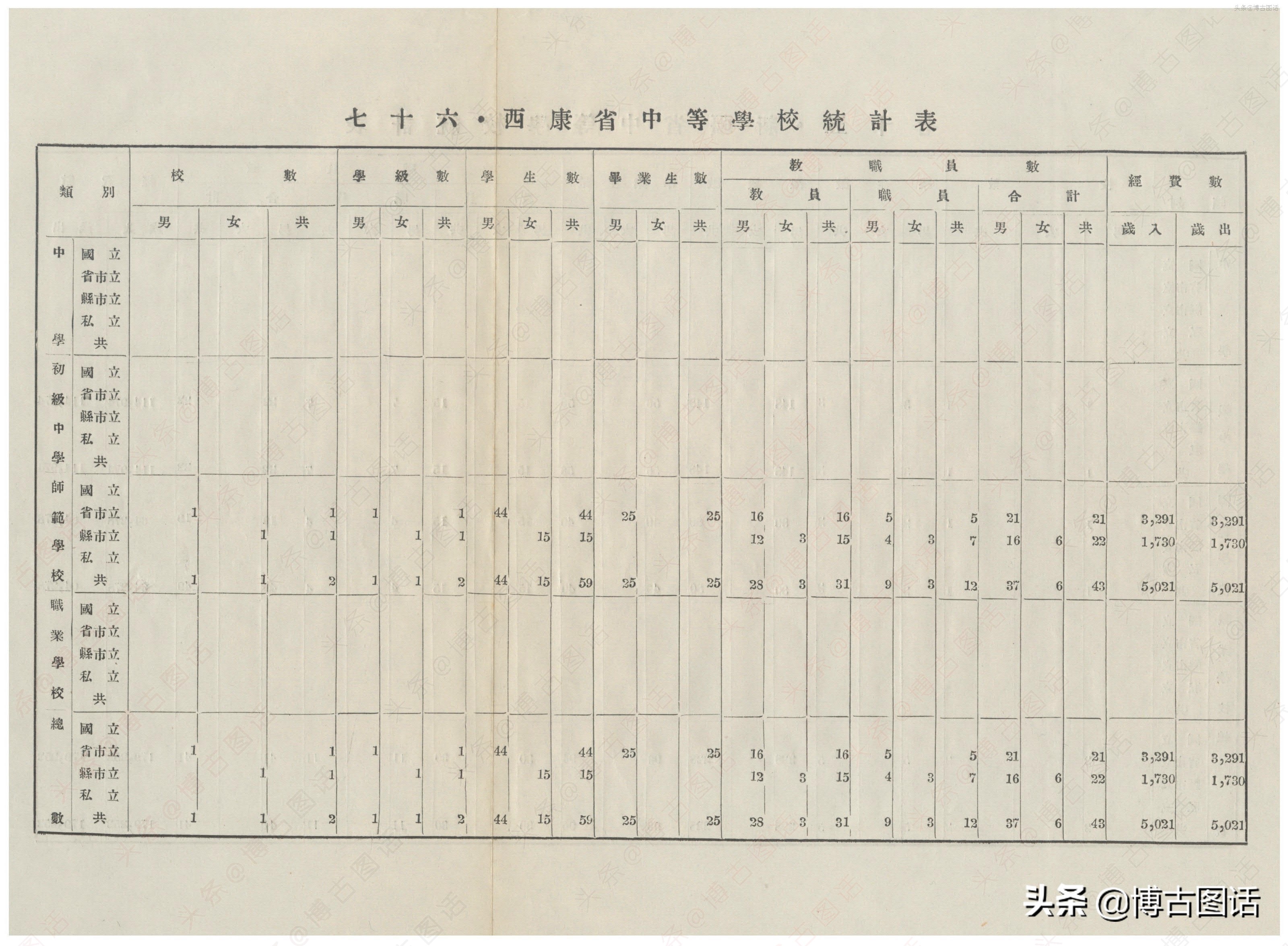 中华民国20年(1931)中学概况,在那个没有计算机的年代,前辈们的手工ppt让我五体投地。