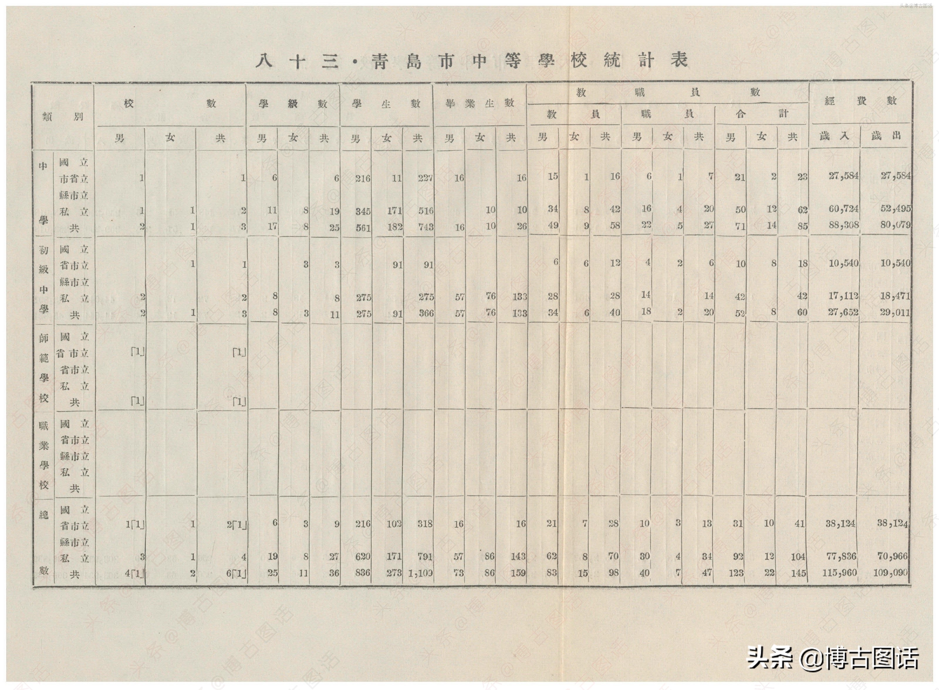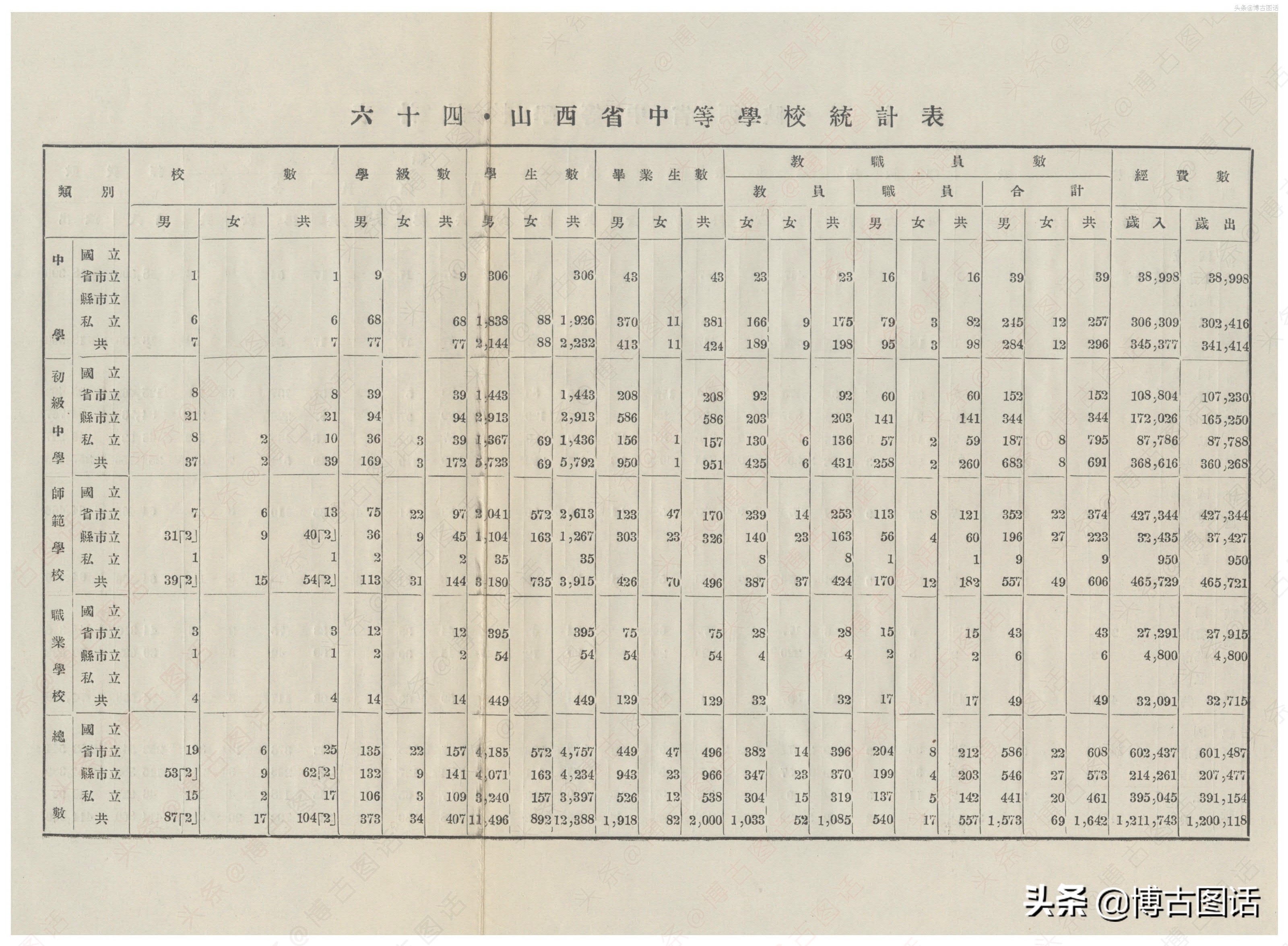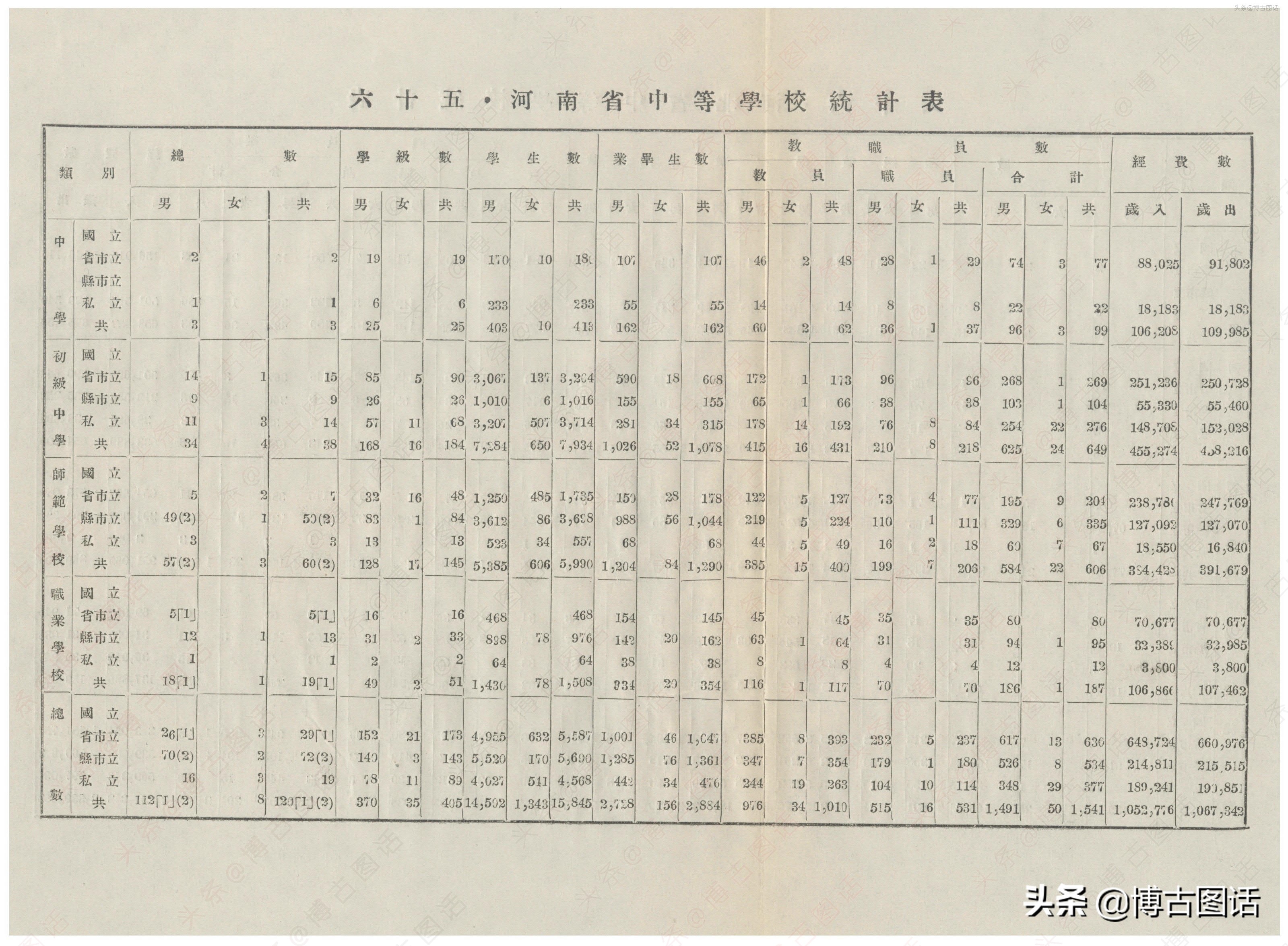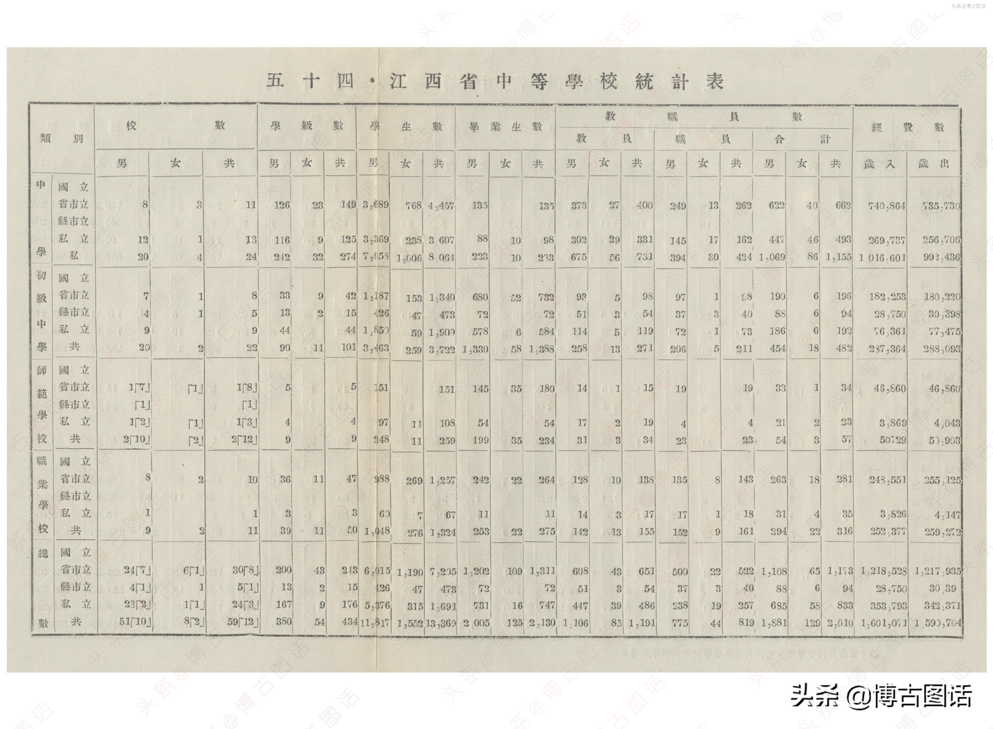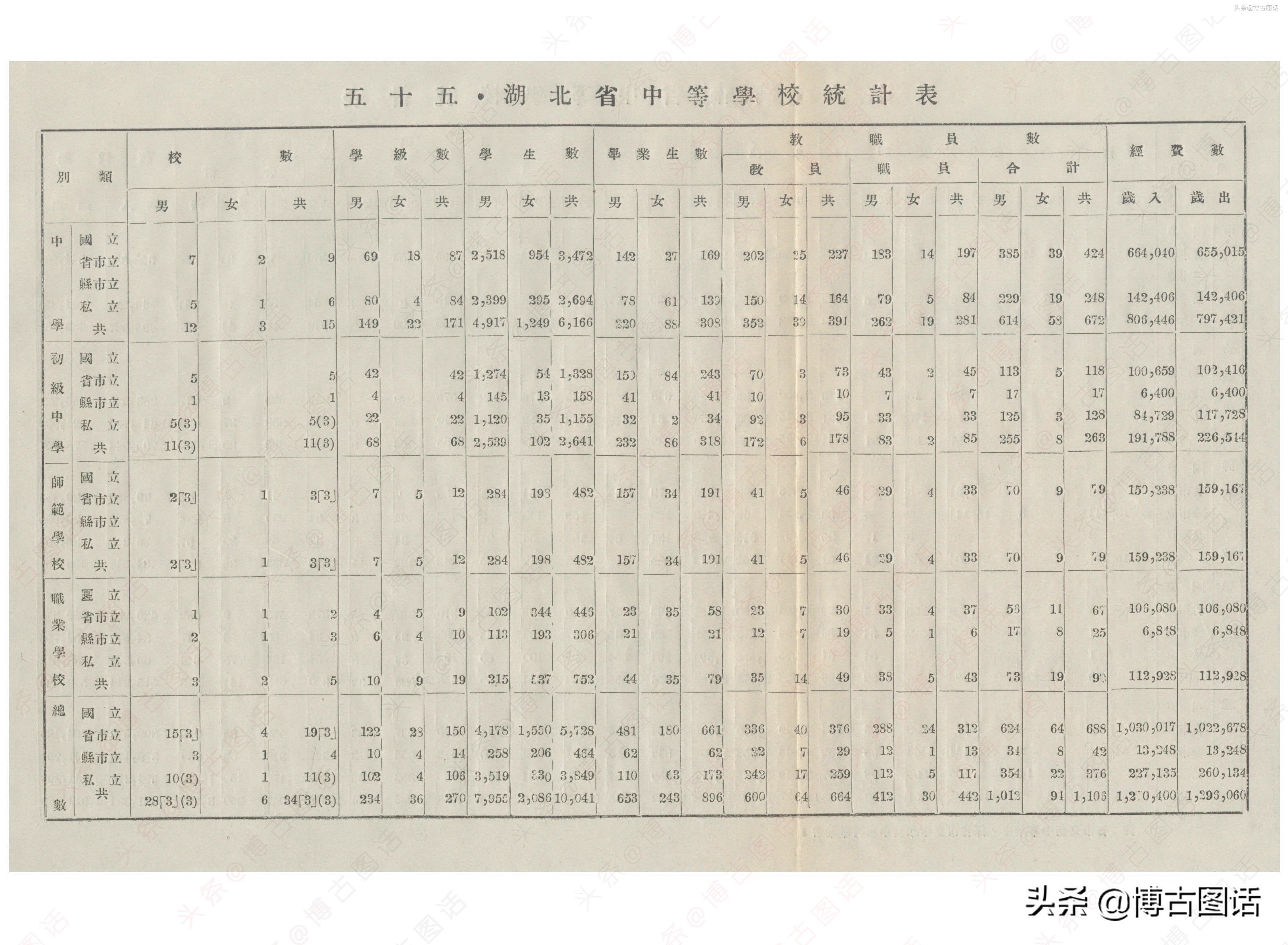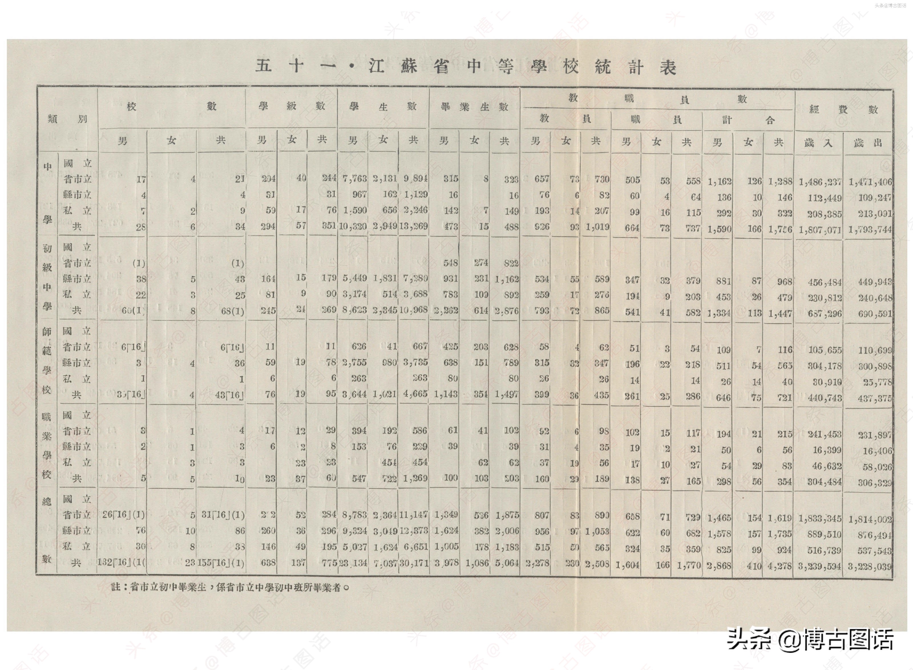 中华民国20年(1931)中学概况,在那个没有计算机的年代,前辈们的手工ppt让我五体投地。