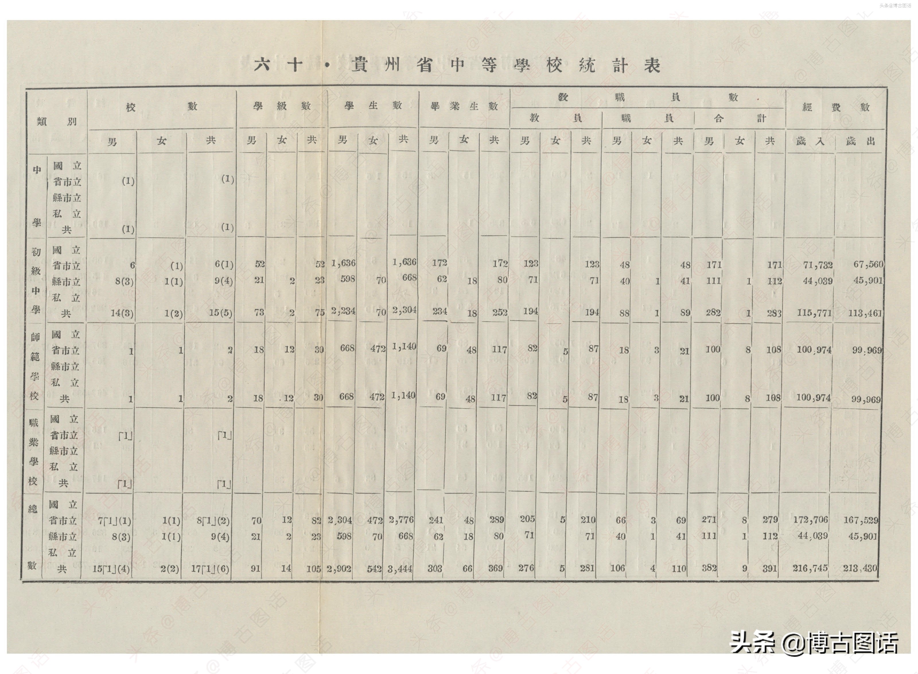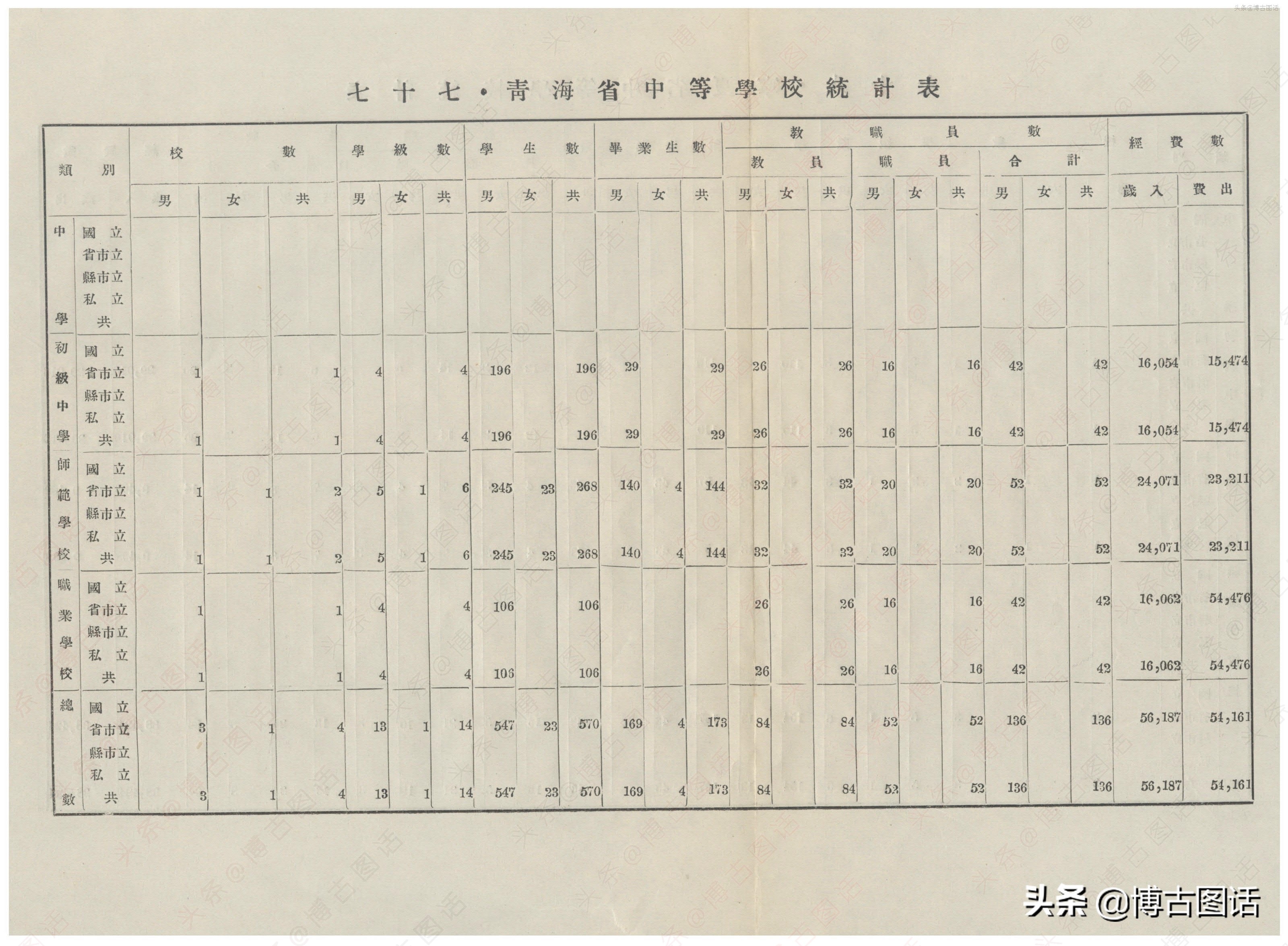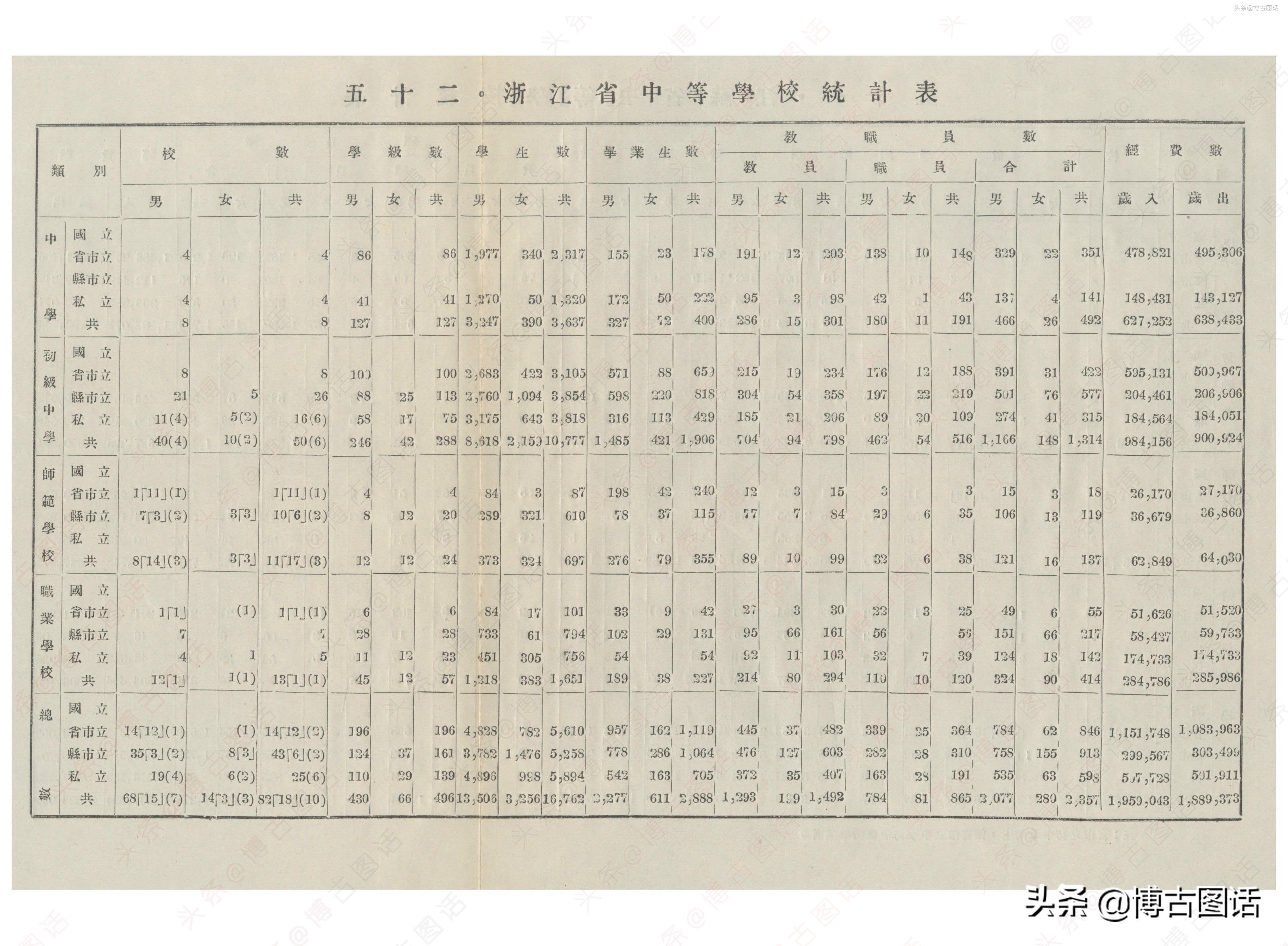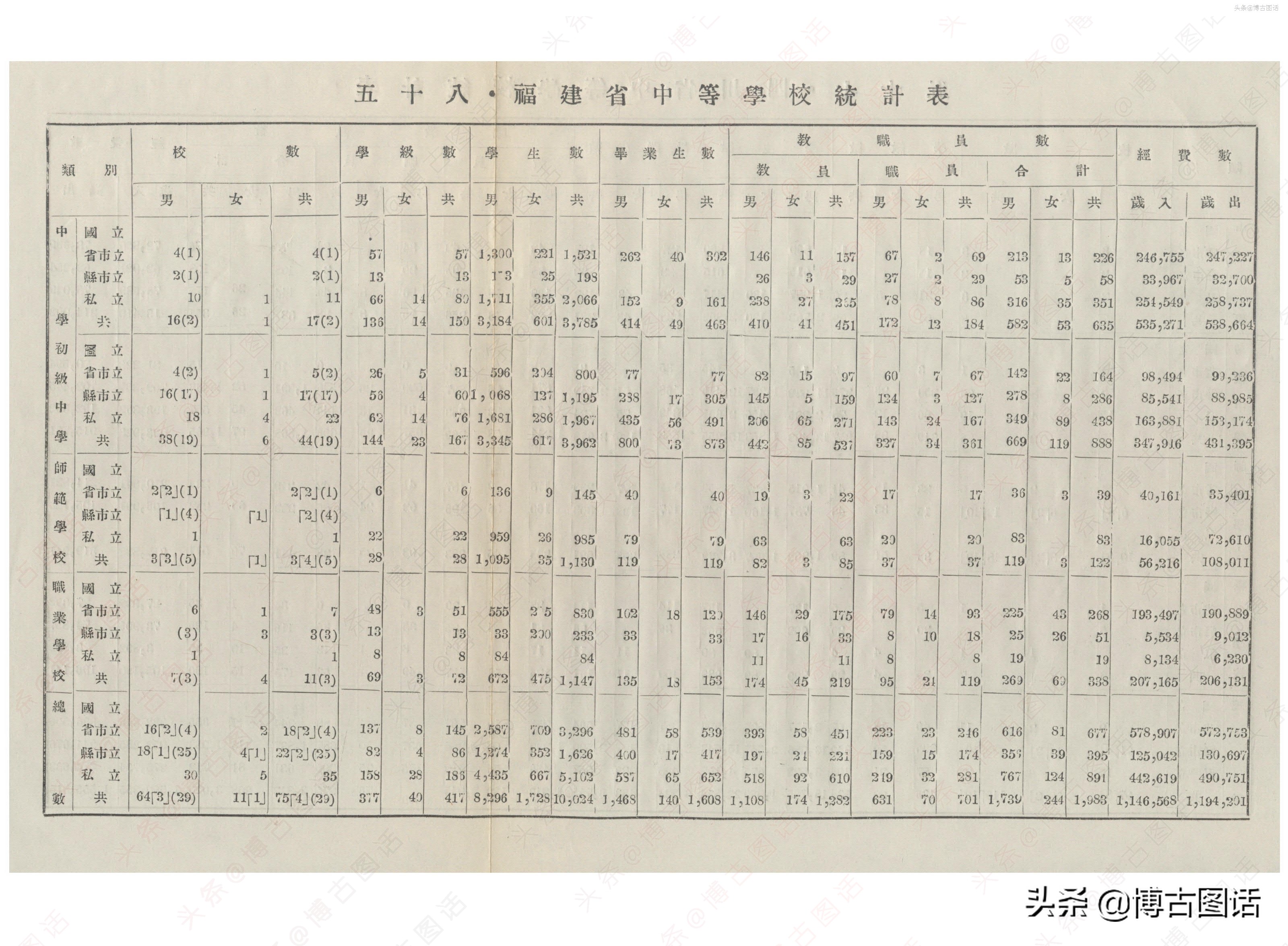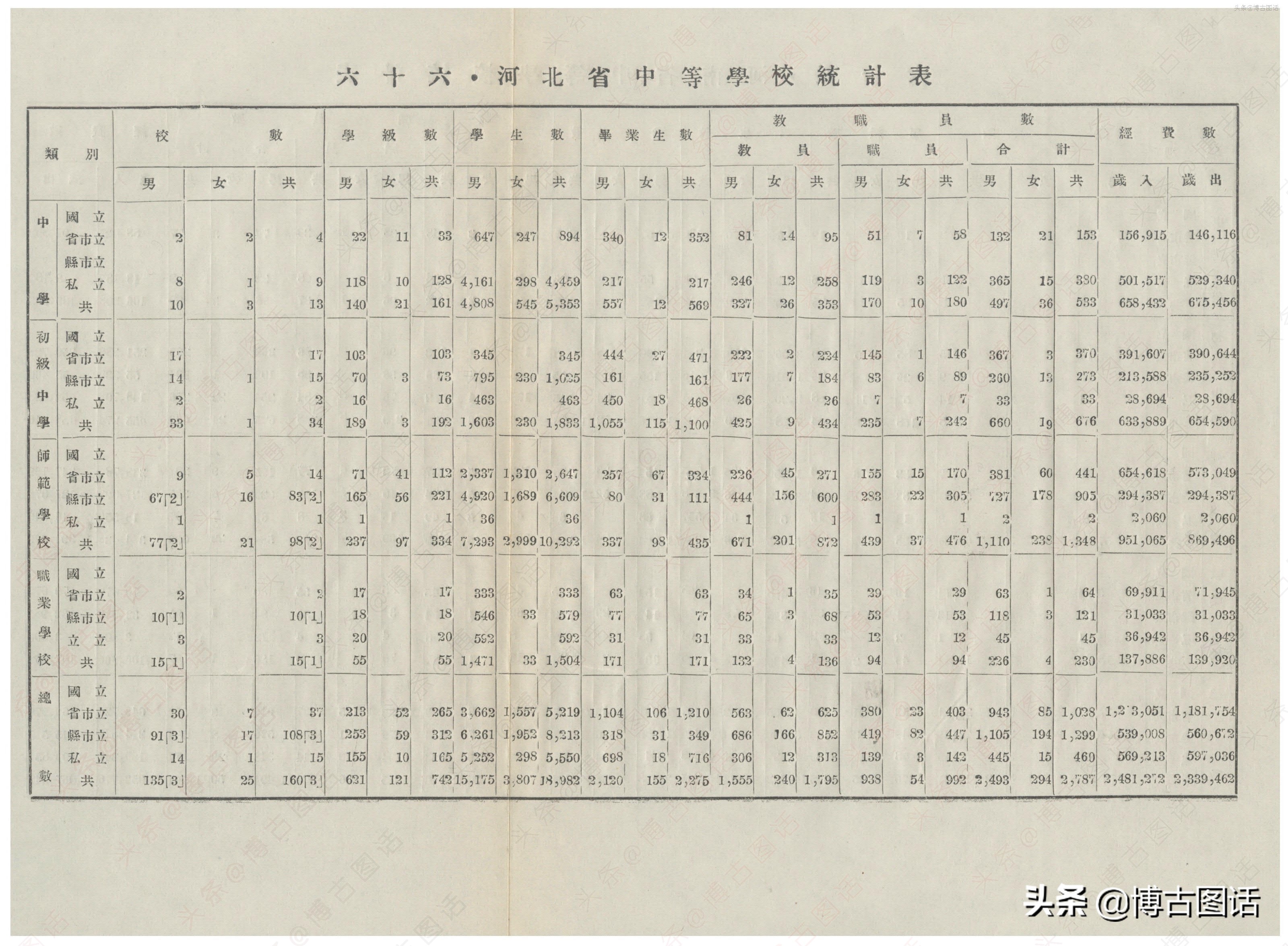 中华民国20年(1931)中学概况,在那个没有计算机的年代,前辈们的手工ppt让我五体投地。