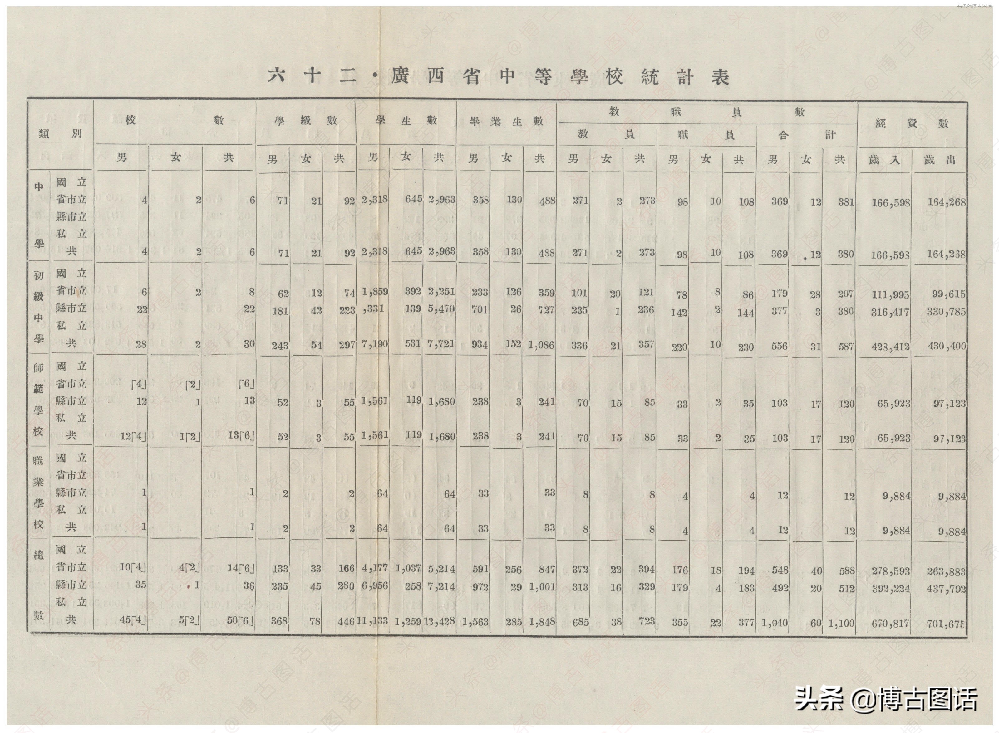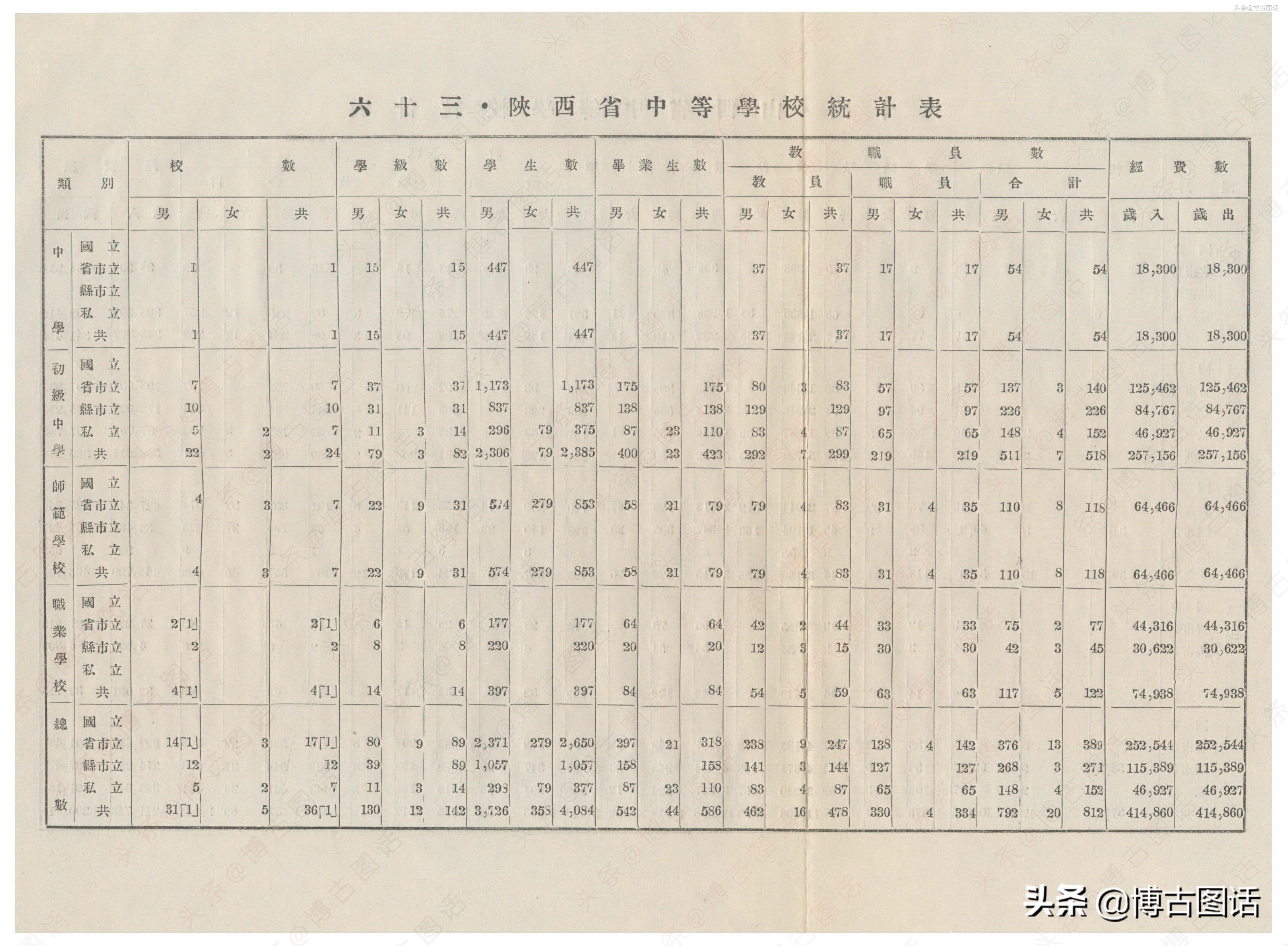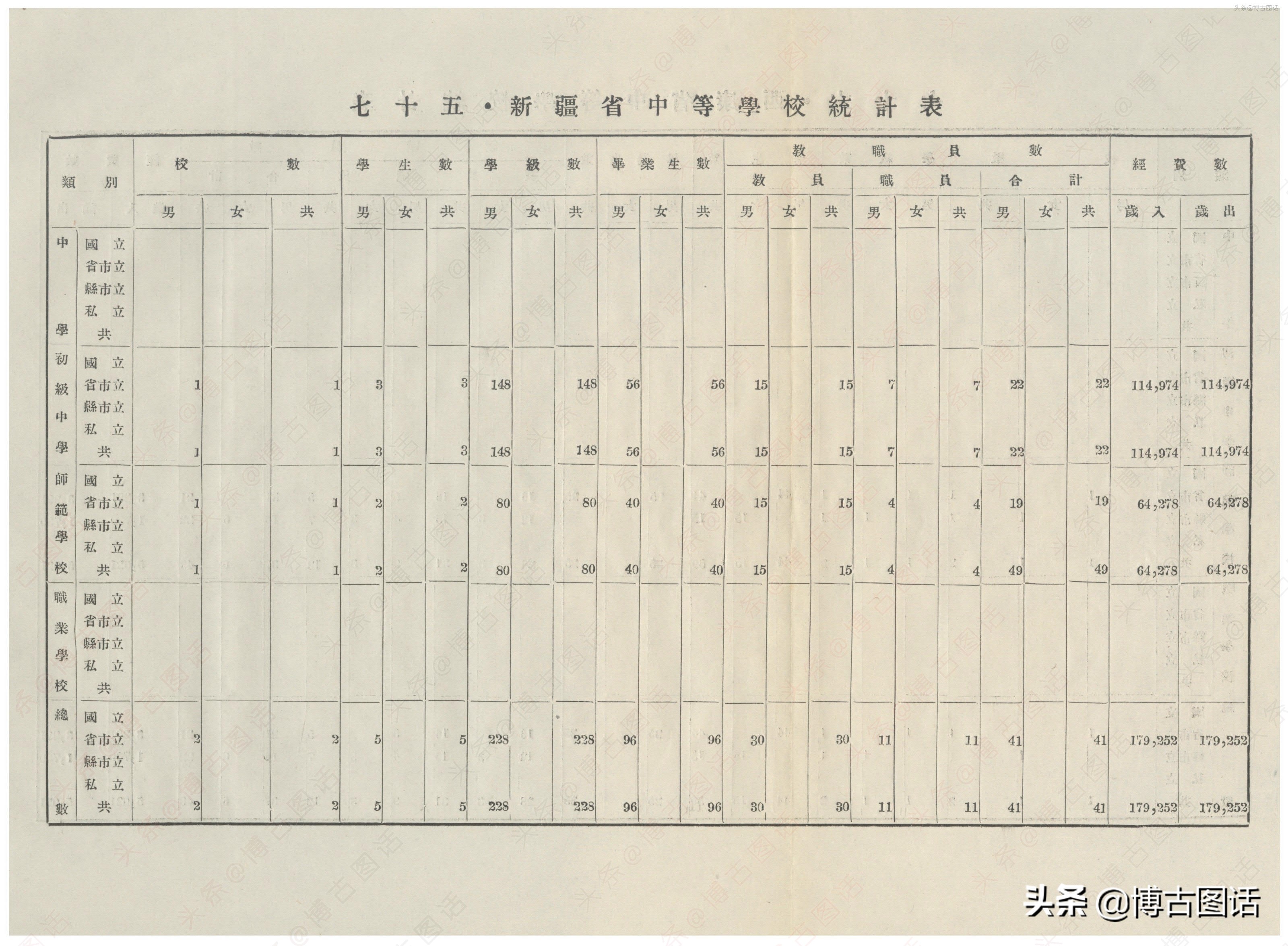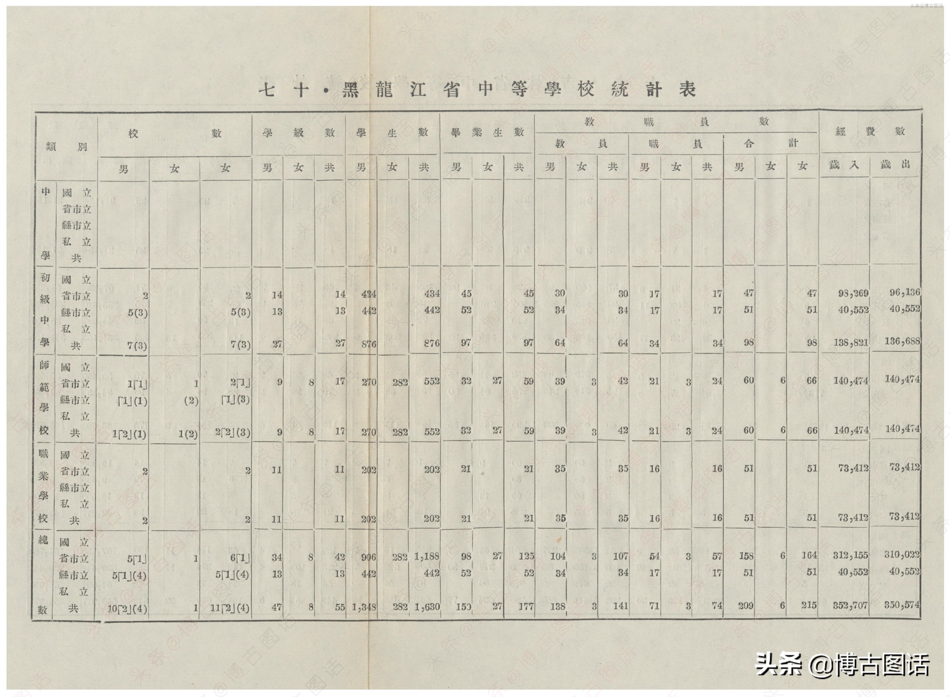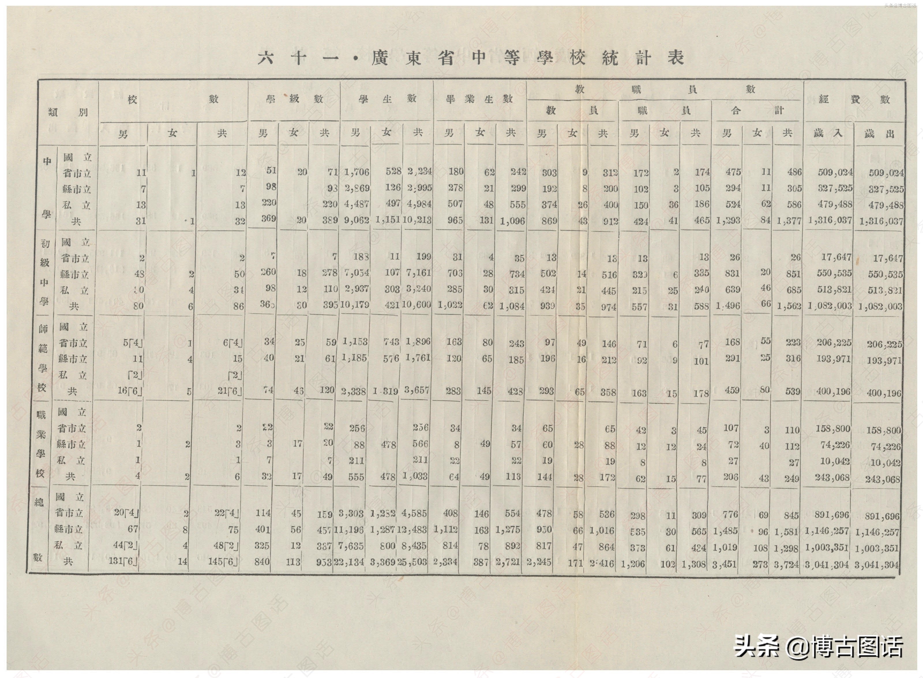 中华民国20年(1931)中学概况,在那个没有计算机的年代,前辈们的手工ppt让我五体投地。