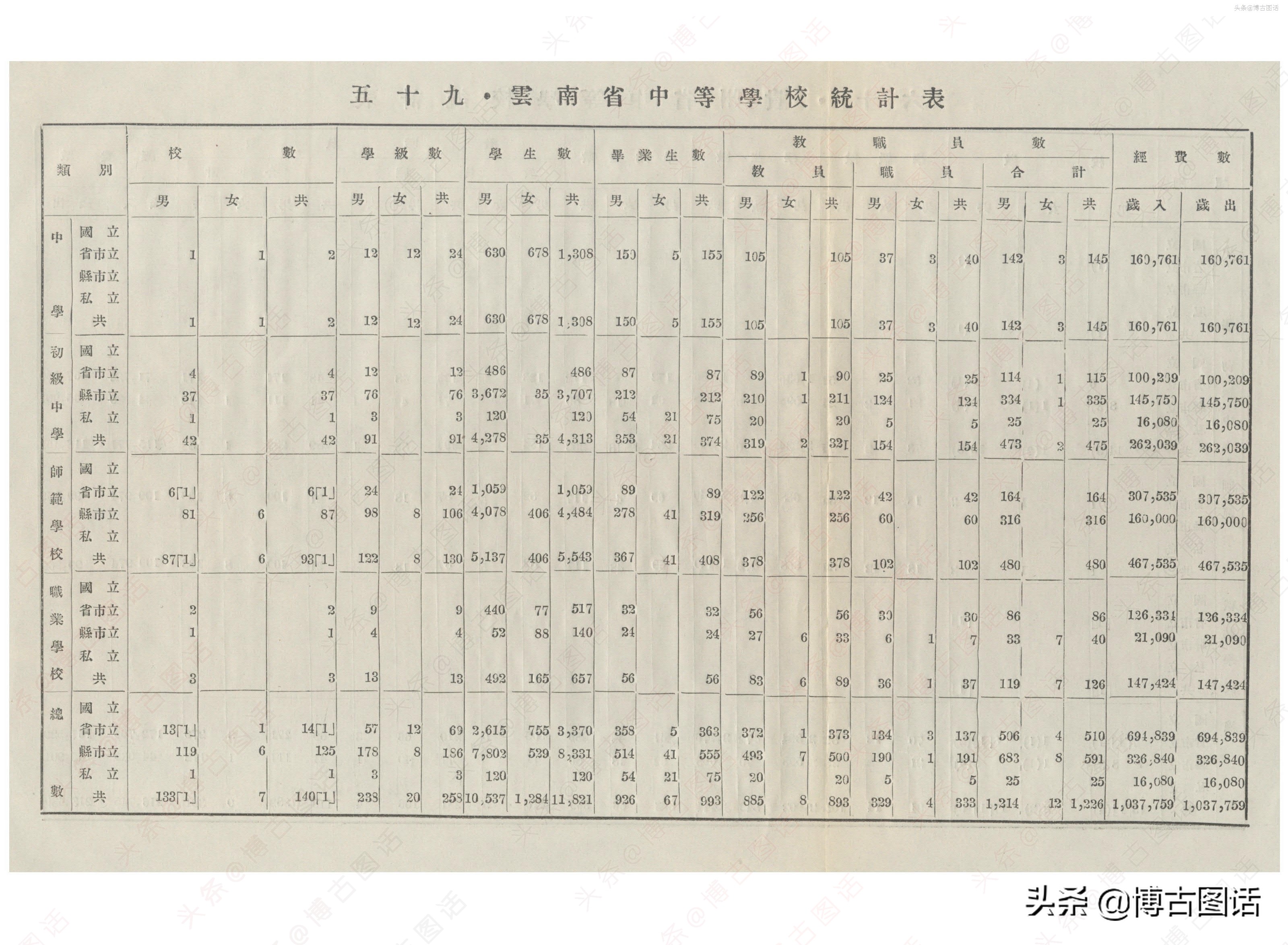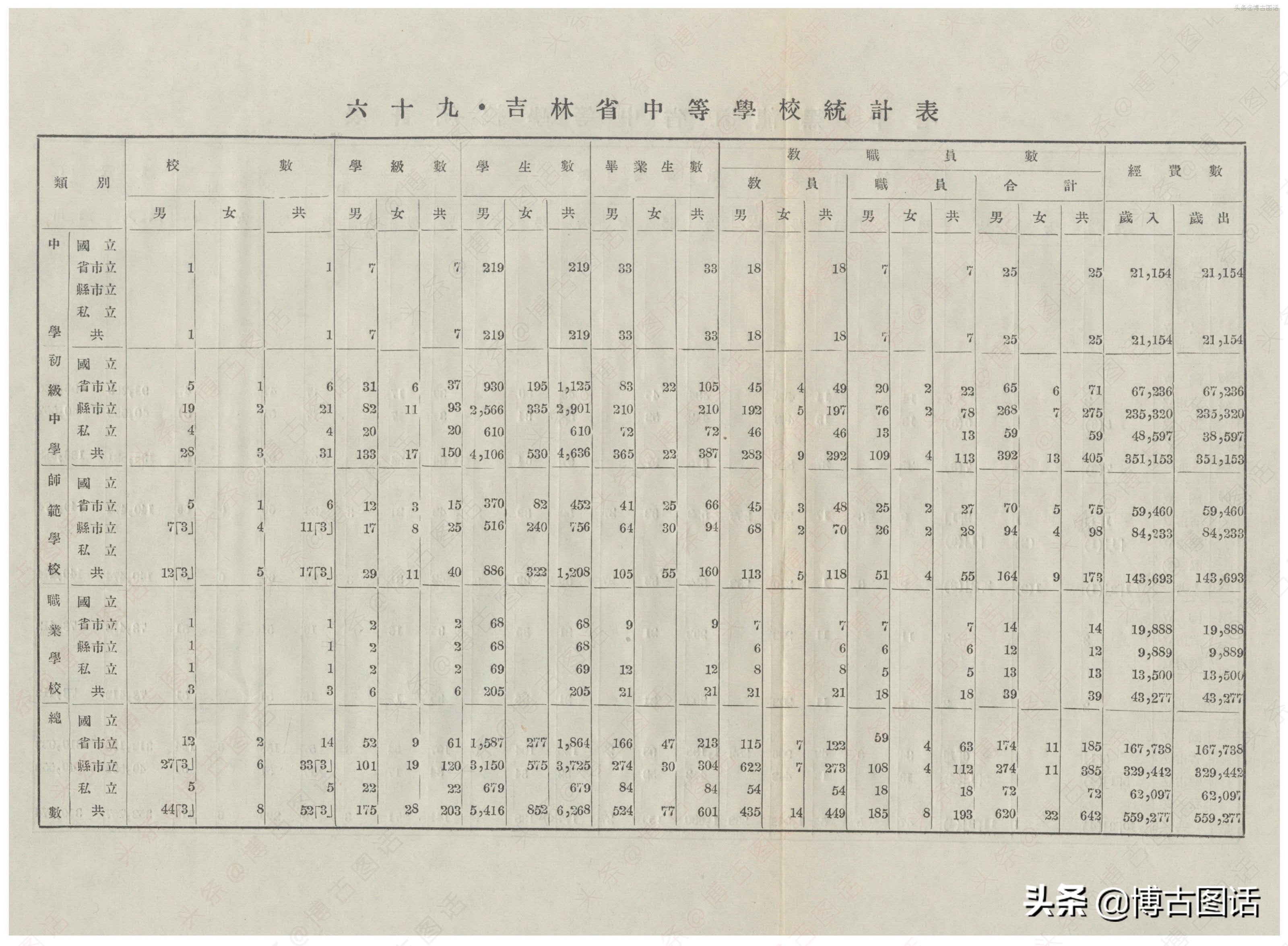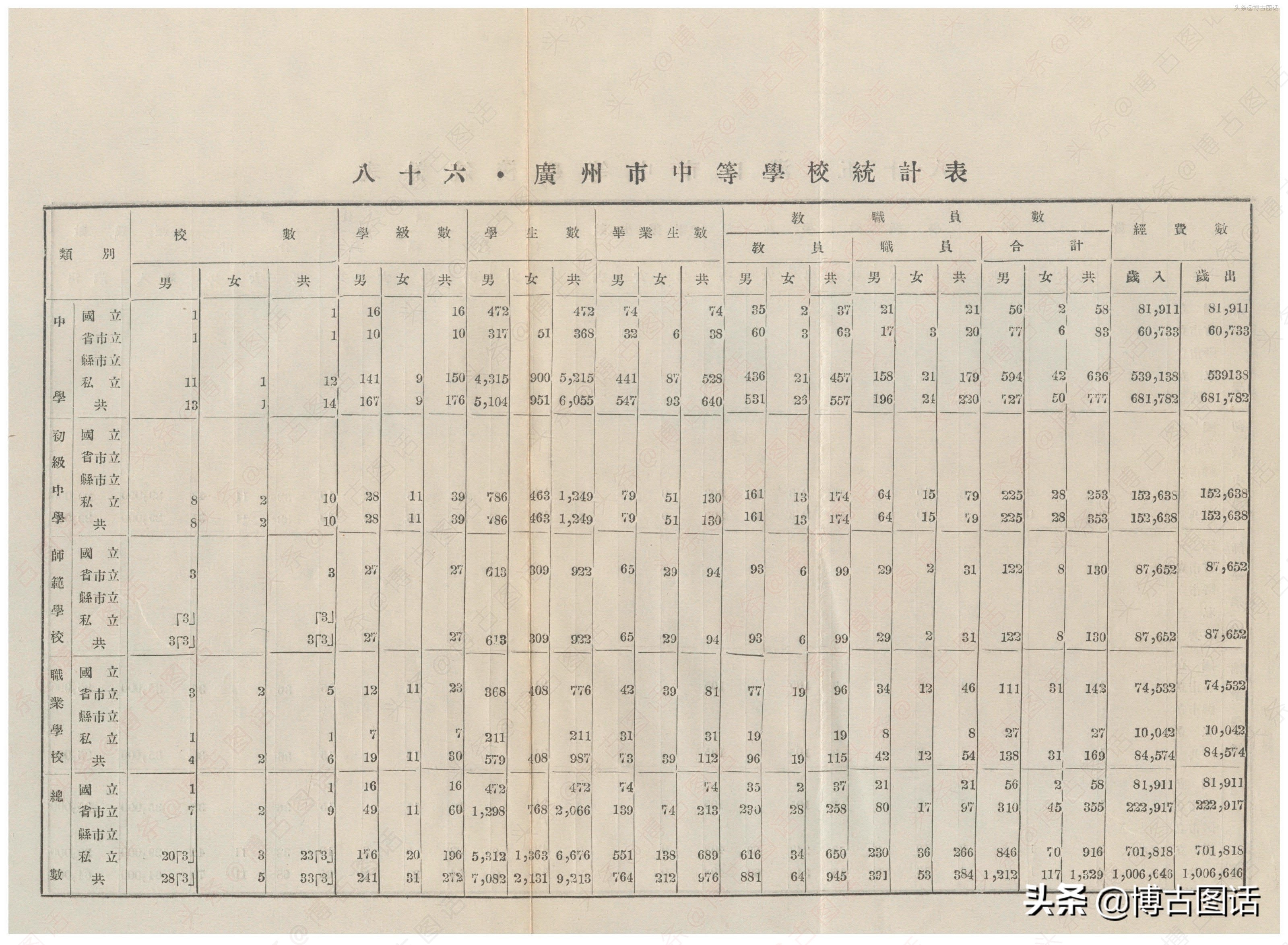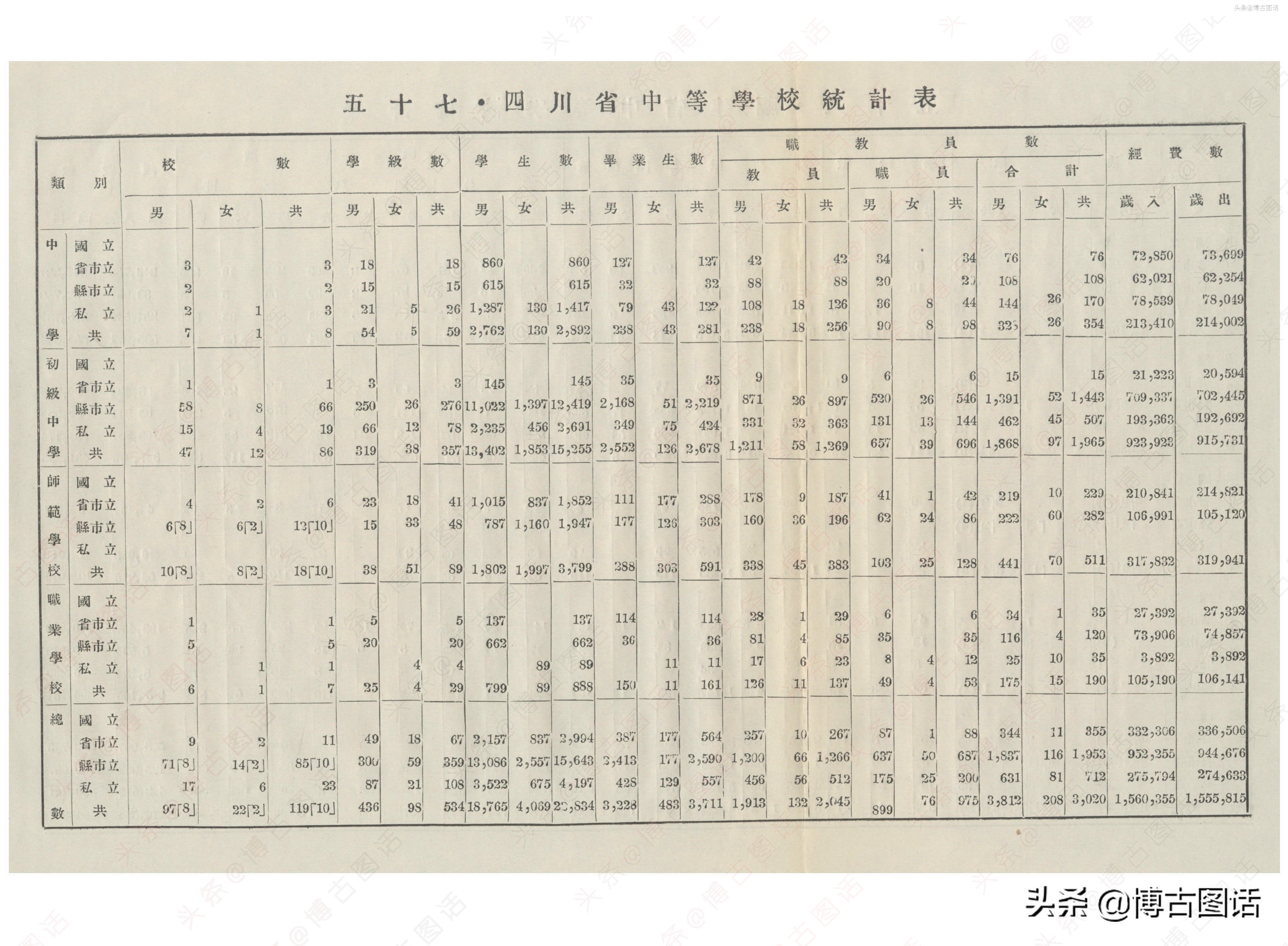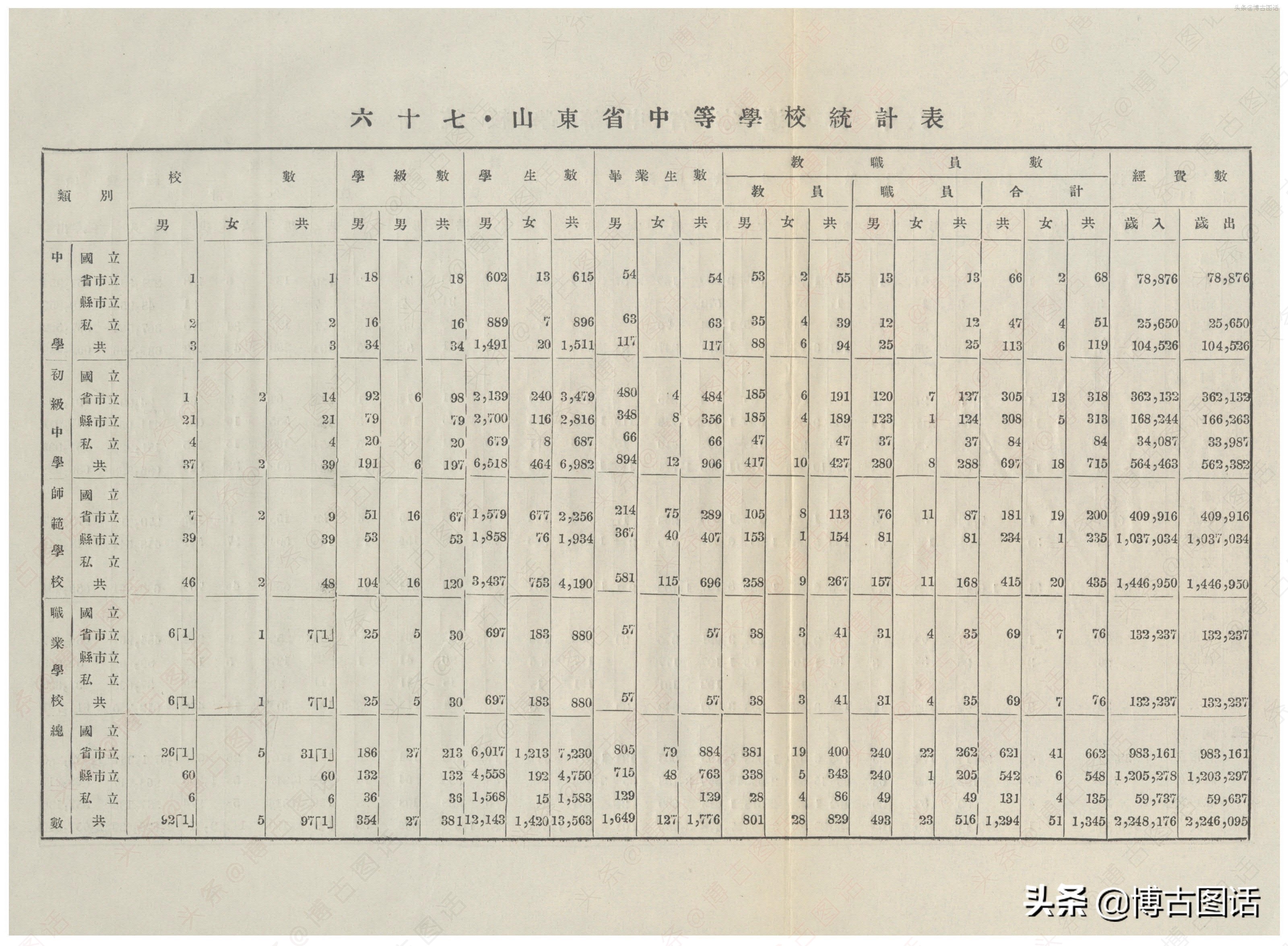中华民国20年(1931)中学概况,在那个没有计算机的年代,前辈们的手工ppt让我五体投地。