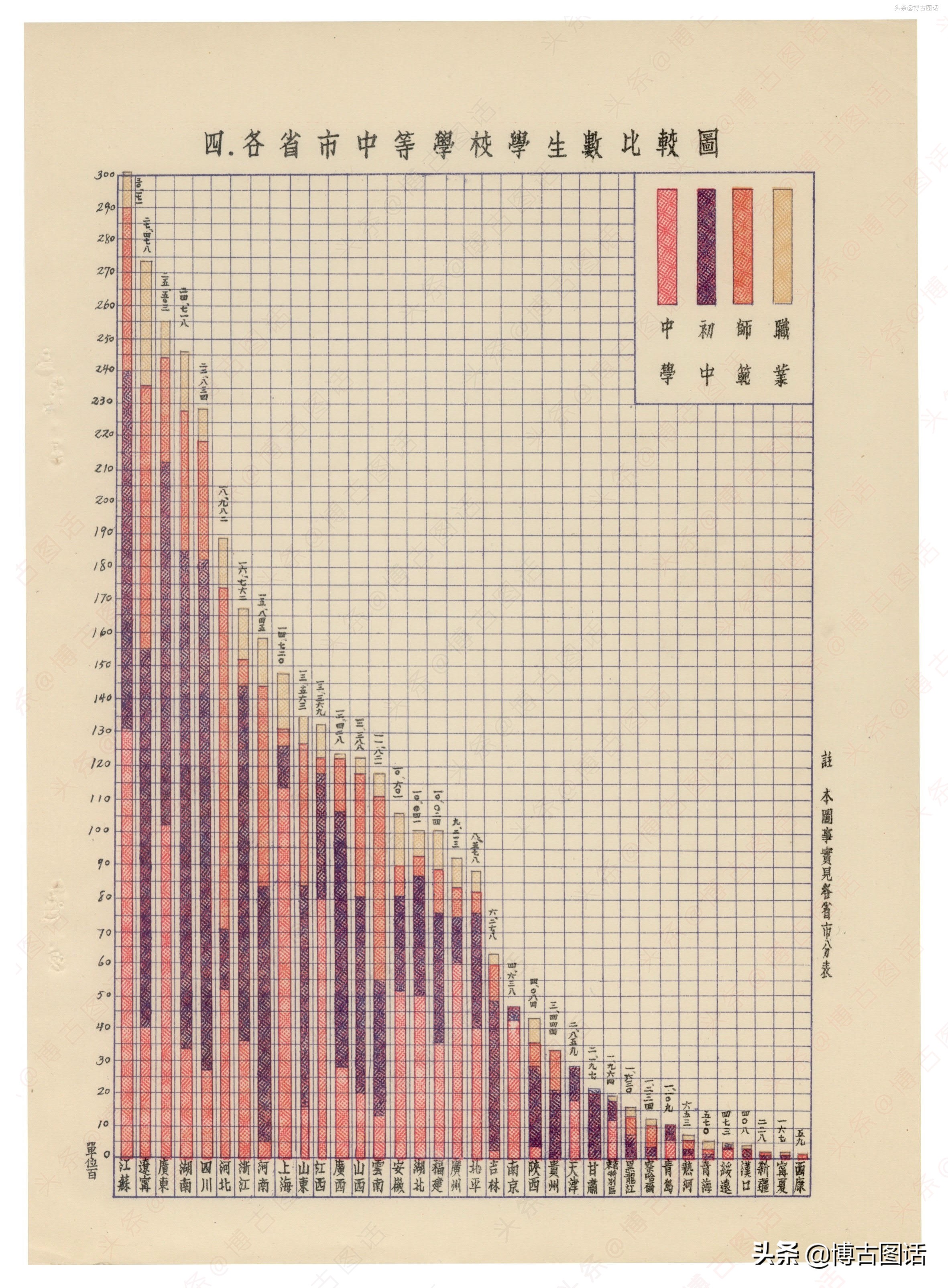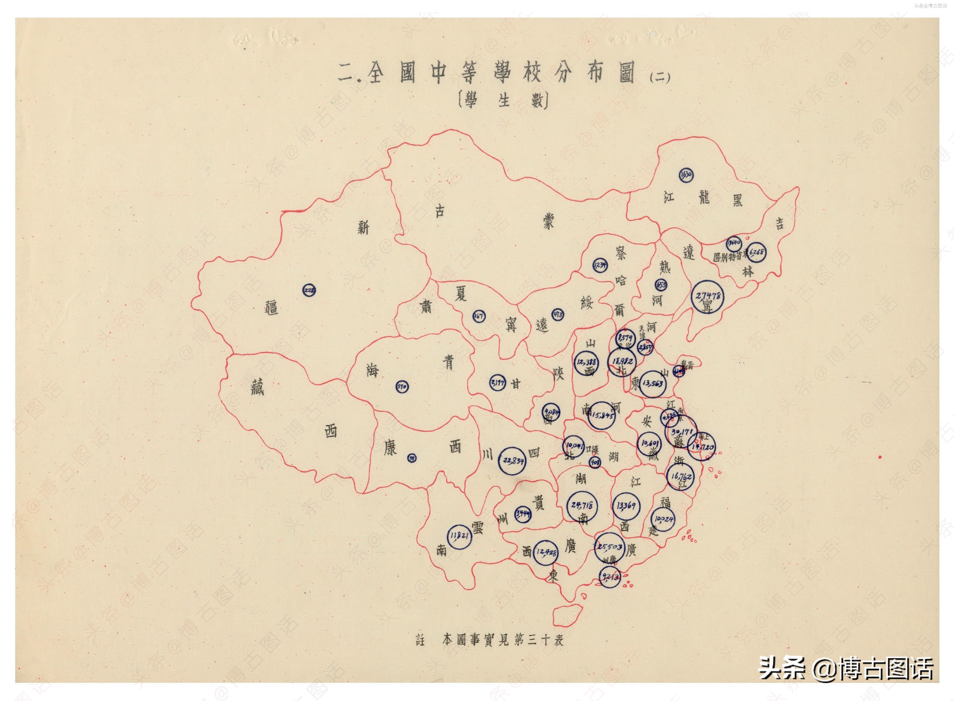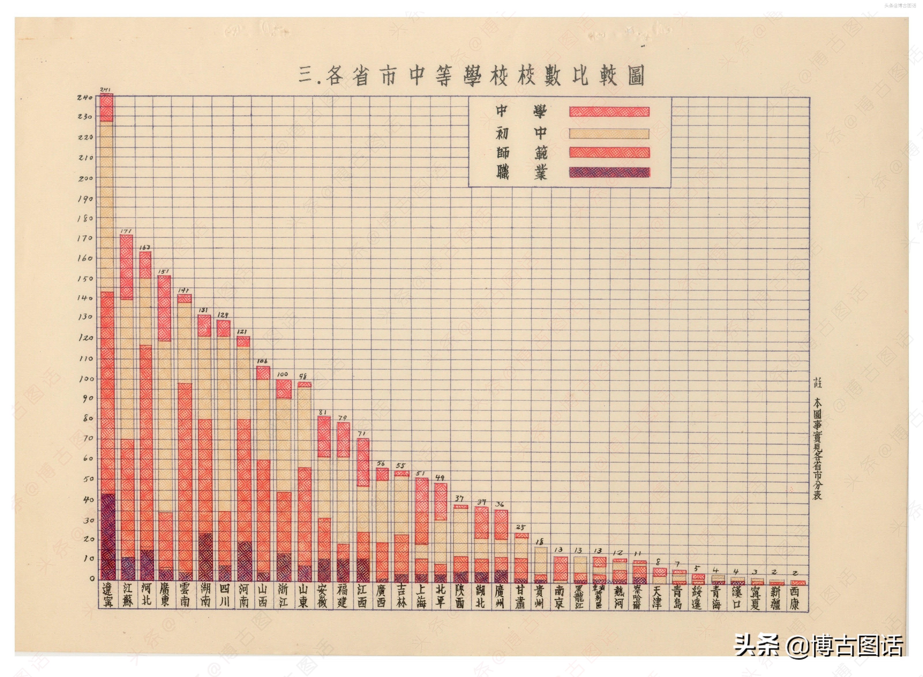 以下为各省中学统计表: