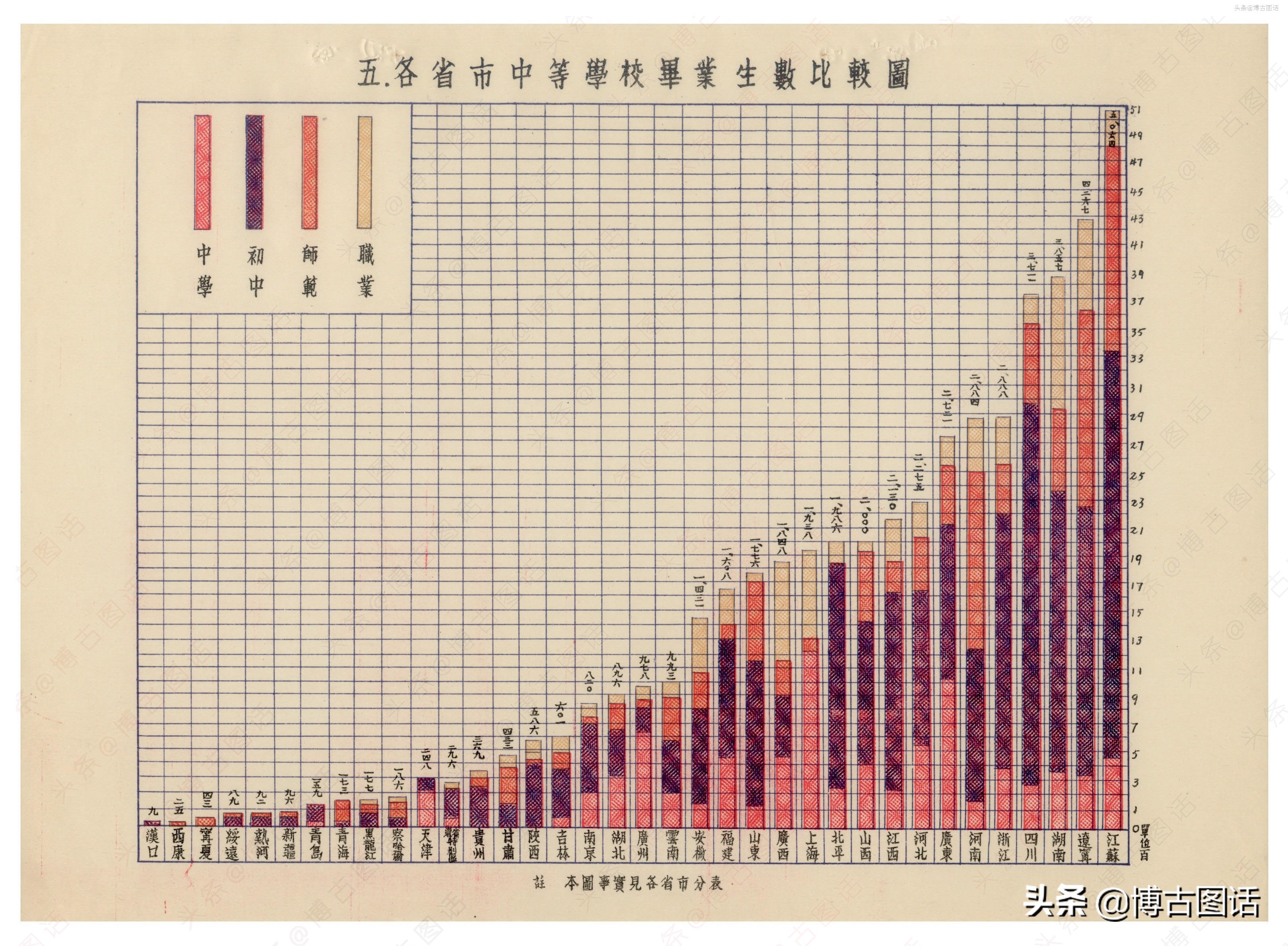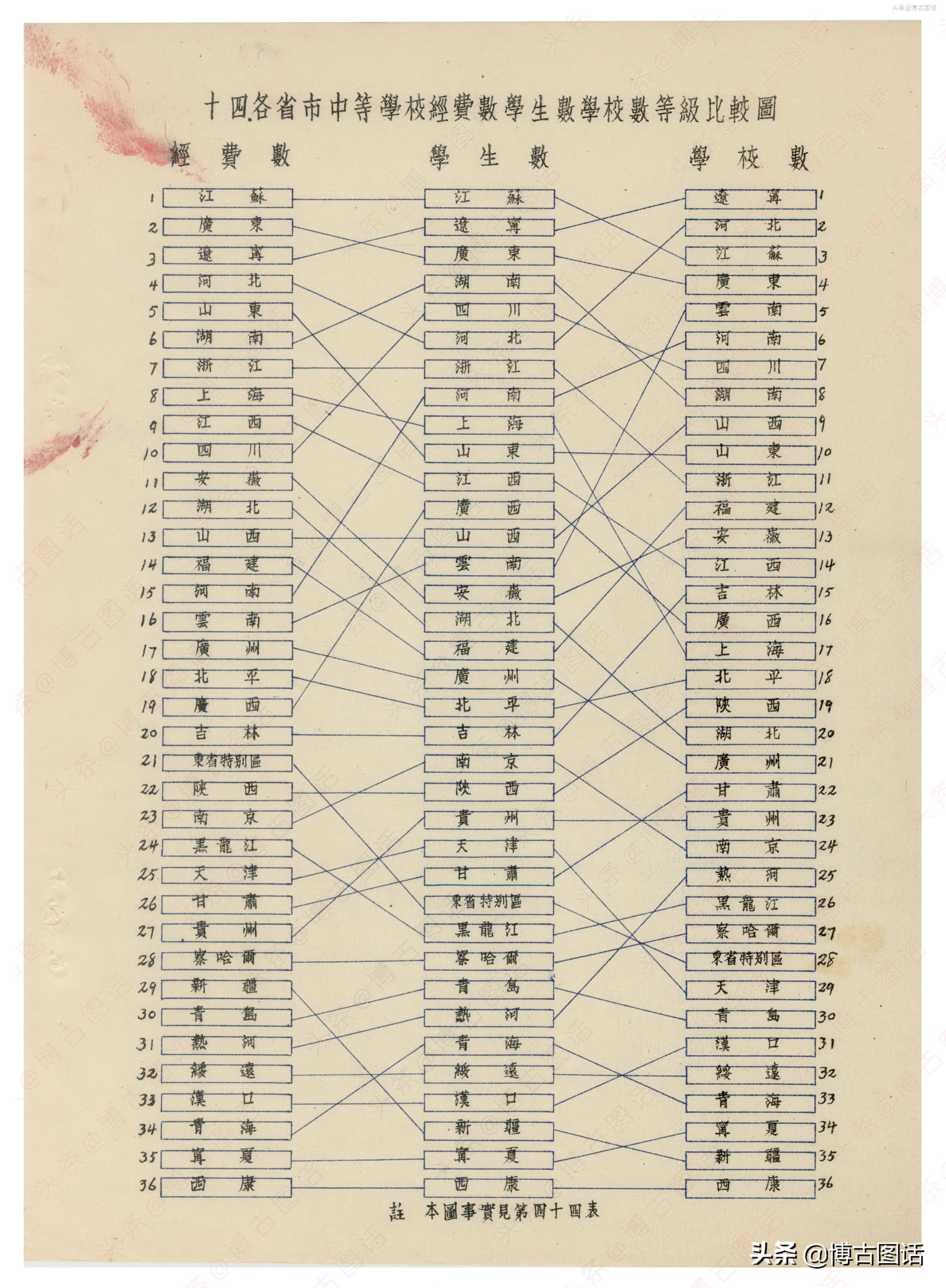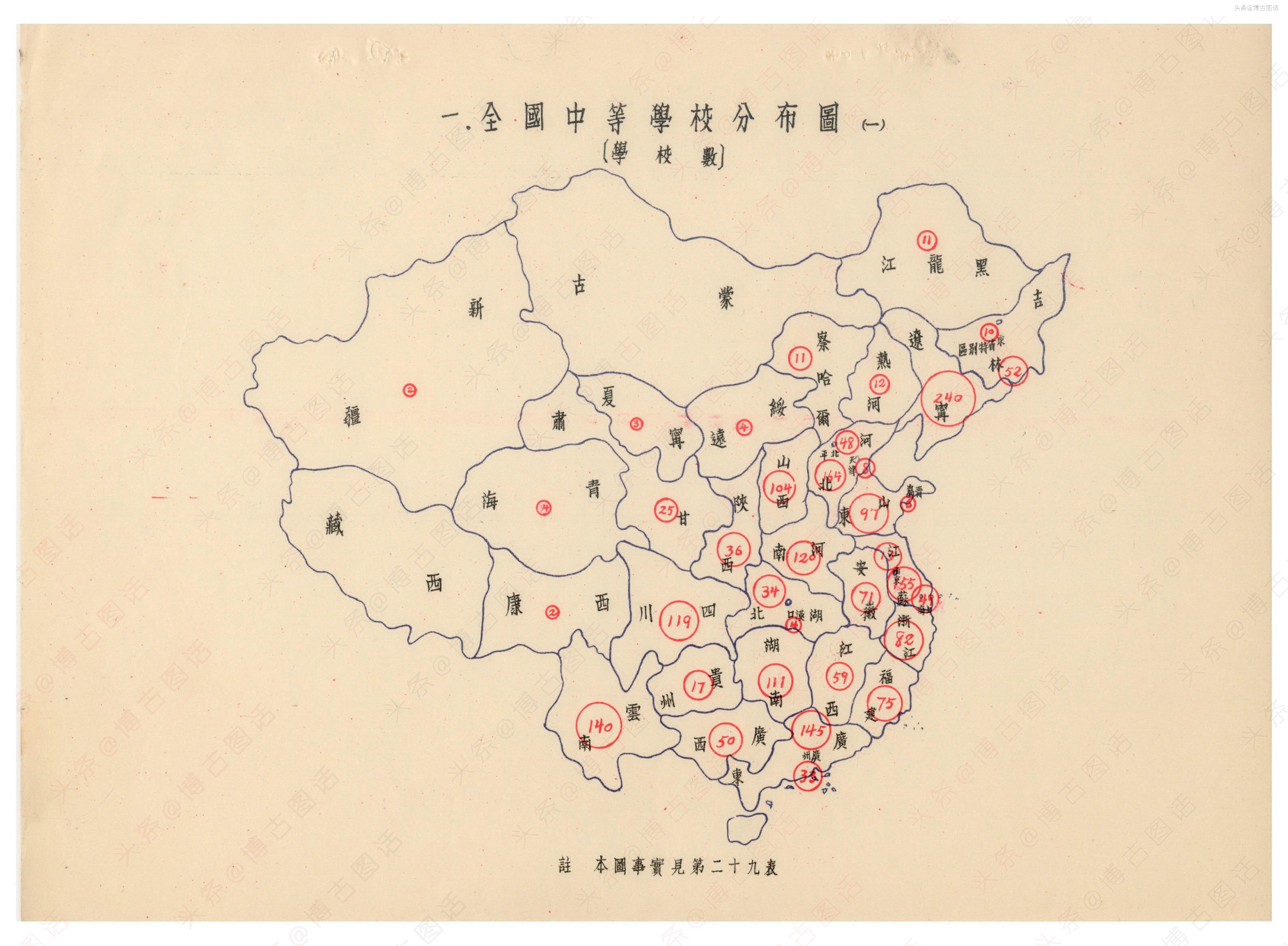 以下为各省中学统计表: