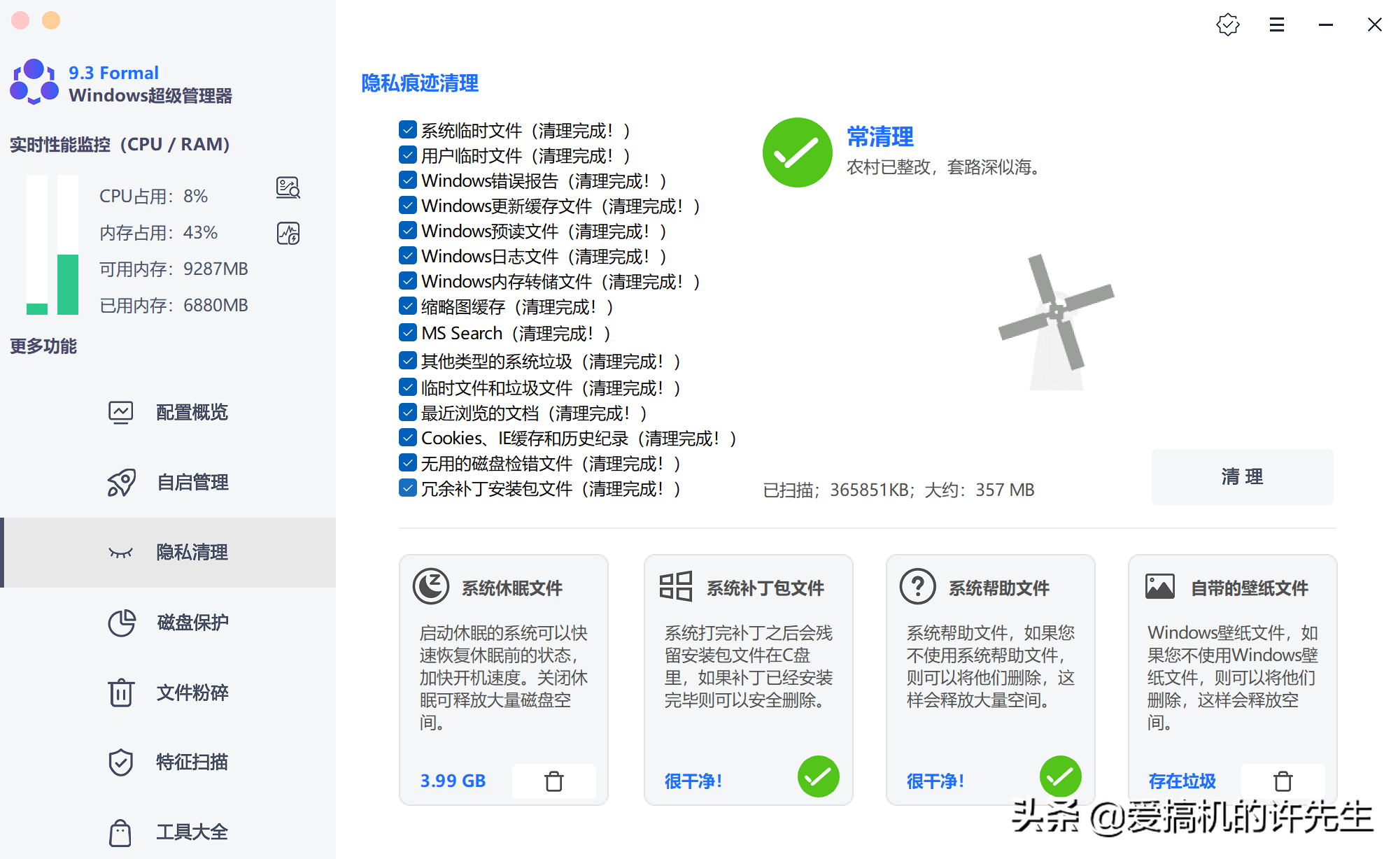 电脑使用时间长了,会留有各种临时文件、日志、cookies、历史记录等。这些东西其实可以删除,时间长了反而没有啥用处。