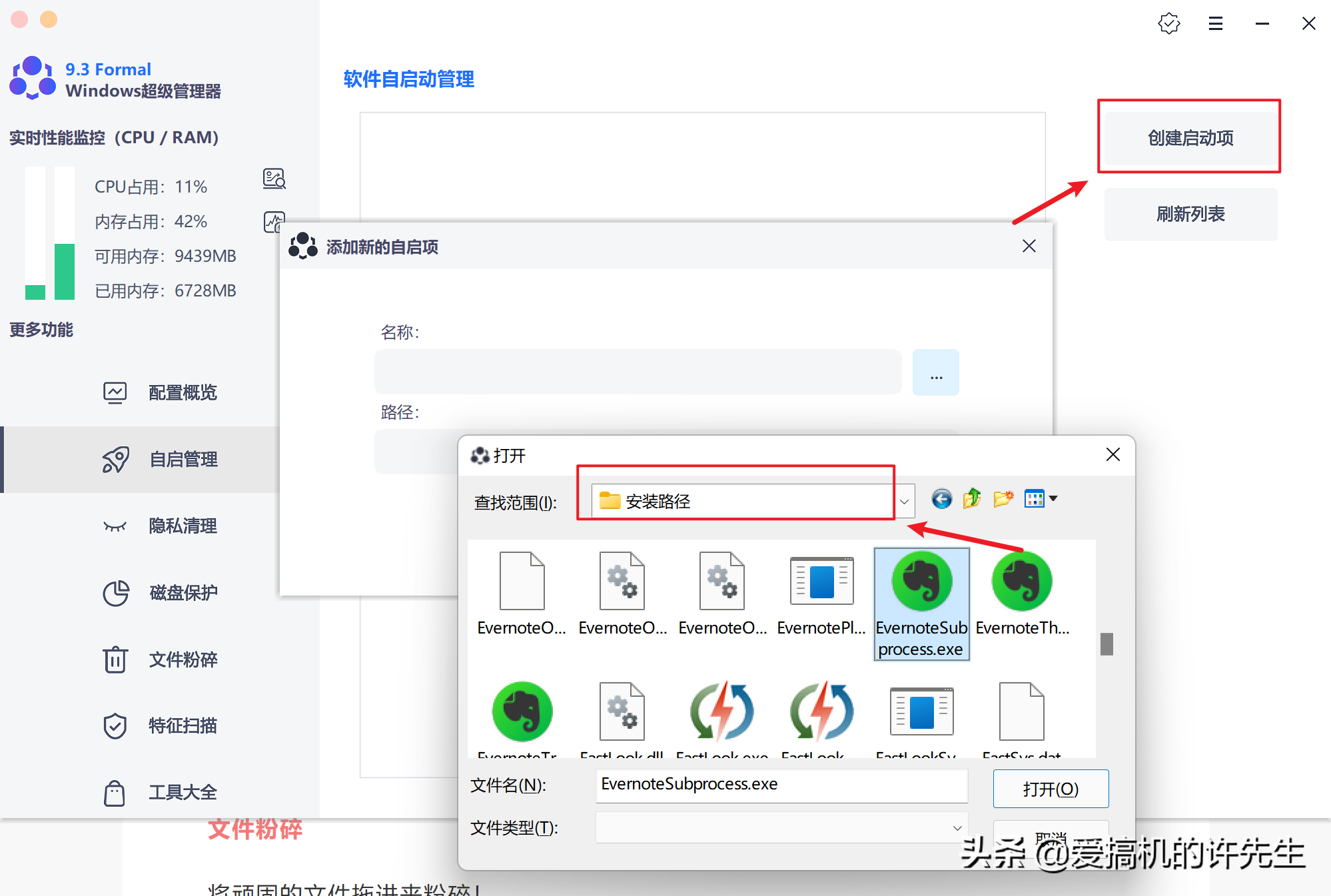 我估计很多人都还不知道如何给某个绿色文件、单文件创建开机启动。虽然手动也可以,但是太麻烦,偶尔用一次的话记不住教程。