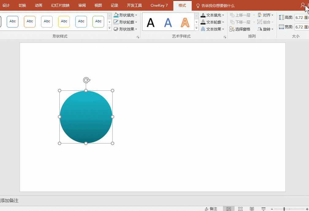 新建一个PPT页面,然后按住shift键,插入一个圆形,并设置一种颜色。