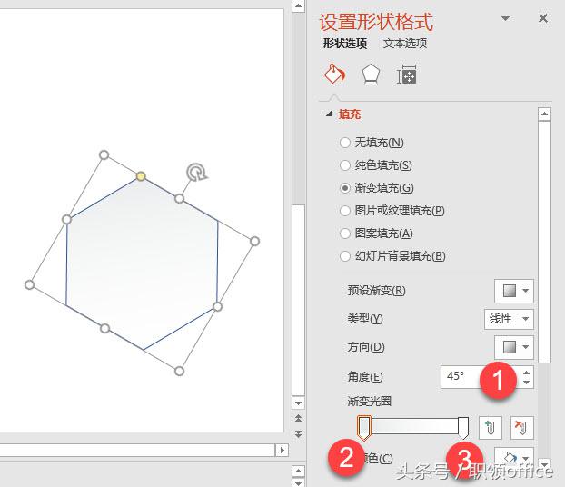 接着选择“形状填充-渐变-变体-线形向上”,当然也可以选择线形向下,注意一定选择垂直方向的渐变色。如下图动图所示。
