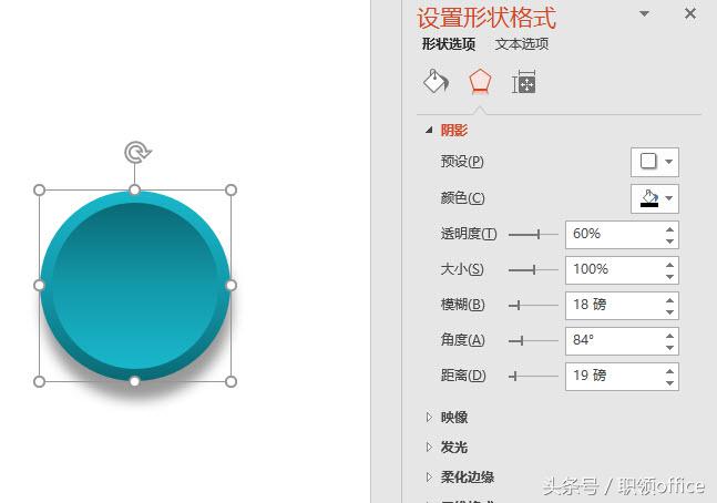接着设置一个凹进去的阴影,然后调整阴影的角度和模糊距离等参数,即可做出样图的效果。注意看动图的操作: