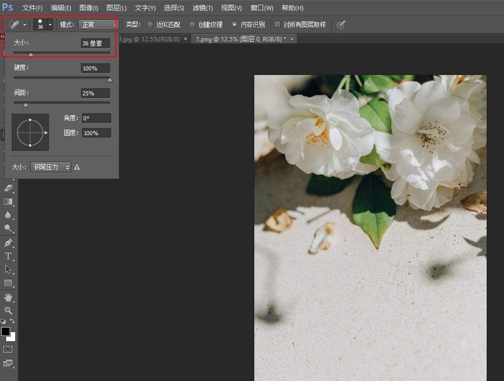 第二步:拖动鼠标来回滑动擦除水印位置就可以把水印去除了。如果你们觉得画笔太小,还可以点击上方画笔的大小进行调整。最后再利用快捷键【Ctrl+Shift+S】保存图片就可以了。