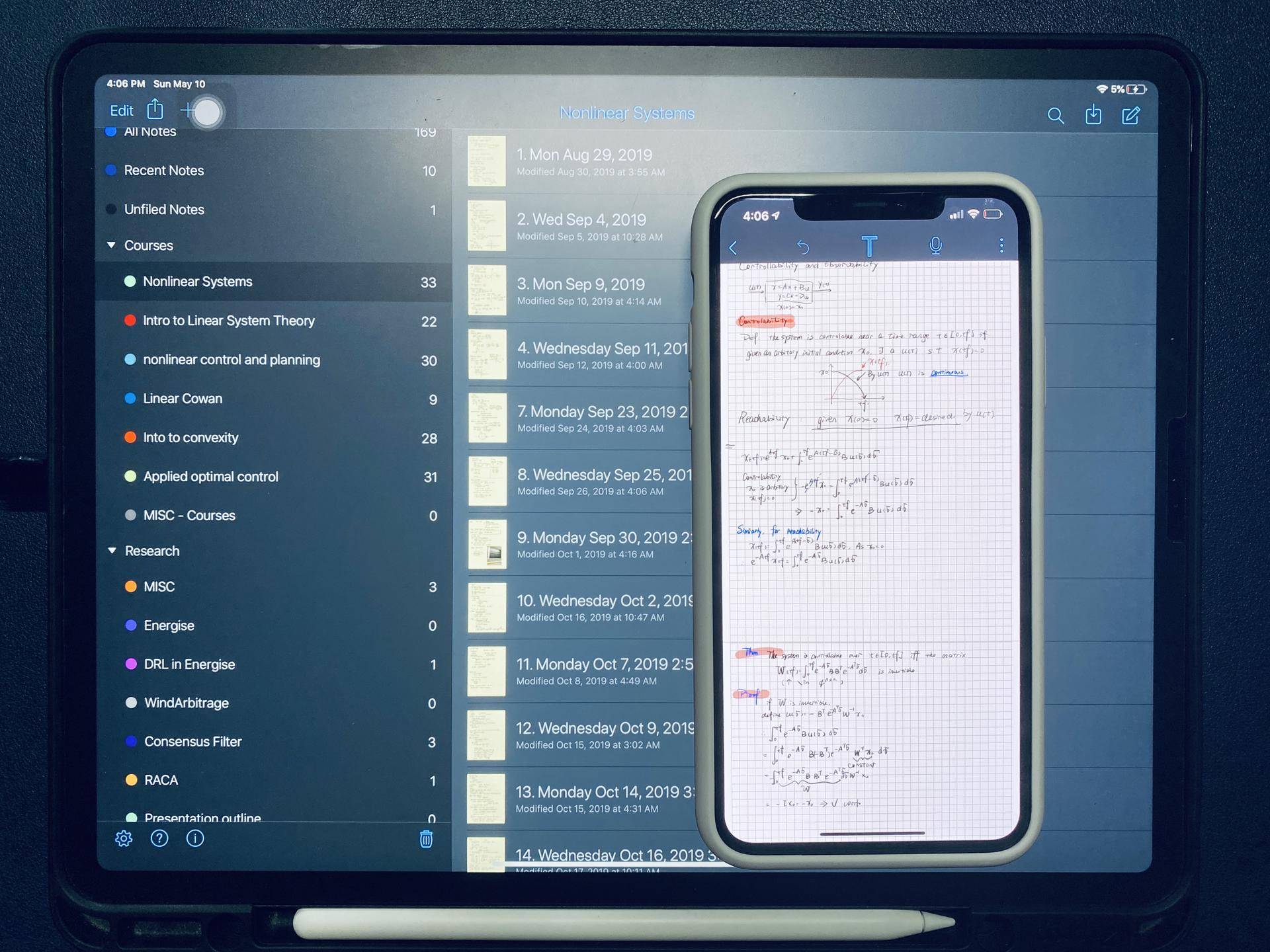 ▲Notability 的 iPad 与 iPhone 端展示,其中 iPad 端展示了我在 iPad 上的分类,iPhone 11 Pro Max 上显示了一个打开的笔记。