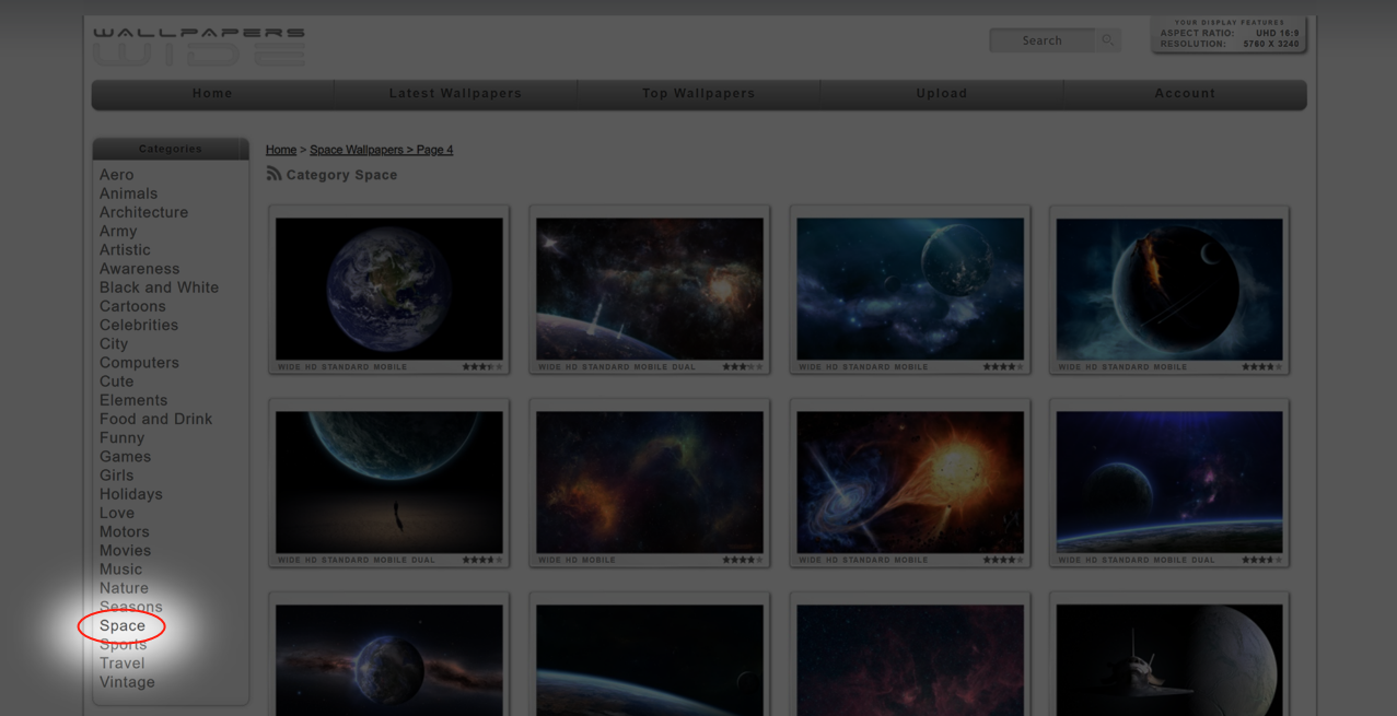 这个网站相较于前两个,分类栏比较多,但是我们只需要用 Space 这一分类就可以: