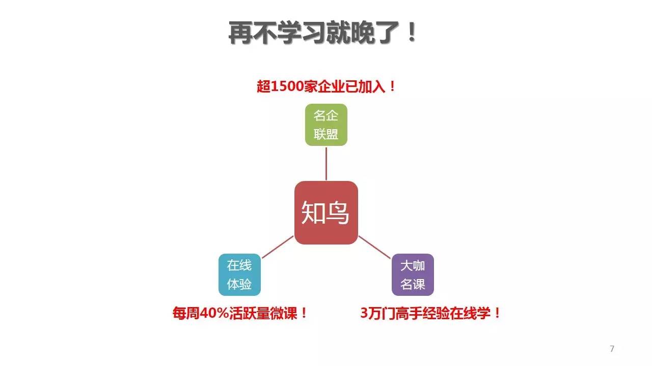 所以对于这样的文案,我首先要想一句能冲击大家的话。然后我干脆就把口号给改了。我改的文案是:再不学习就晚了!
