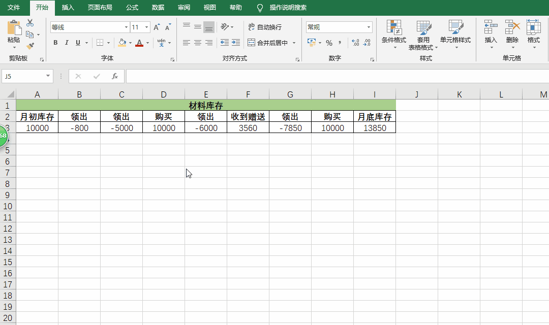 这表示我们将“月初库存”设置为初始值;同理,我们再把最后一列数据“月底库存”进行相同操作。
