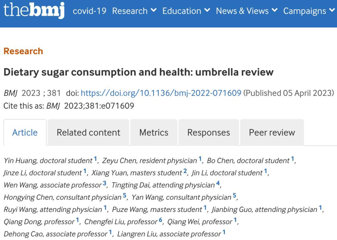 四川大学华西医院柳良仁教授带领的团队发表在《英国医学杂志》上的研究发现,高糖的饮食习惯不益于身体健康,可能会增加心脏代谢类疾病的发生风险。