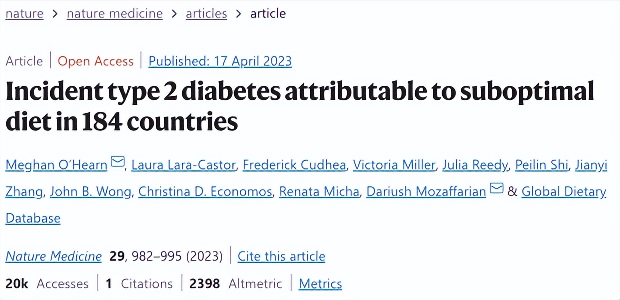 一项发表在《Nature(自然)》子刊上的研究发现,全球近七成的2型糖尿病是由于不良饮食习惯所致。