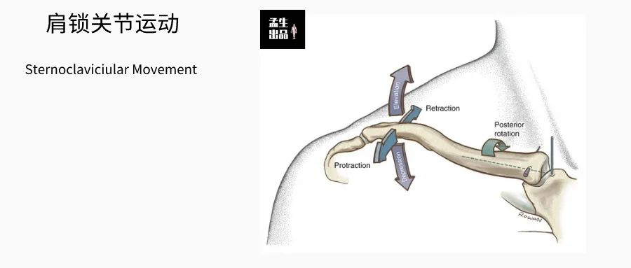 胸锁关节通过肩锁关节为盂肱关节提供稳定,并跟随盂肱关节进行抬高、压低、伸出、缩回与旋转的运动