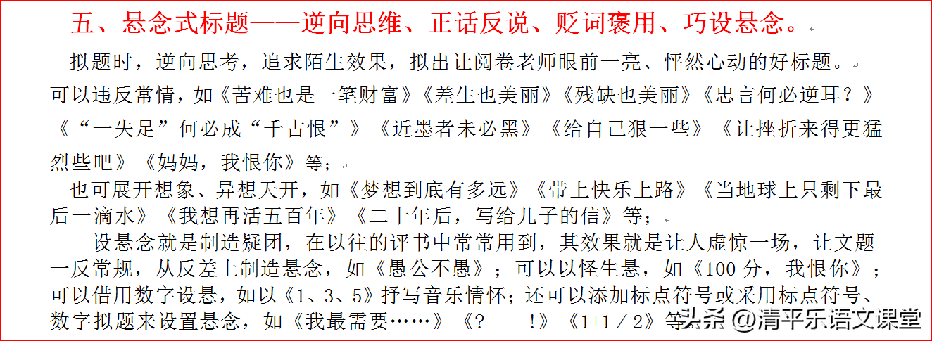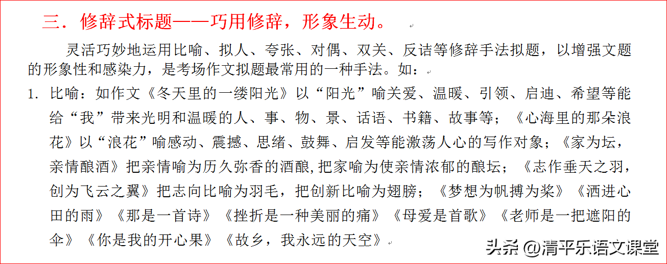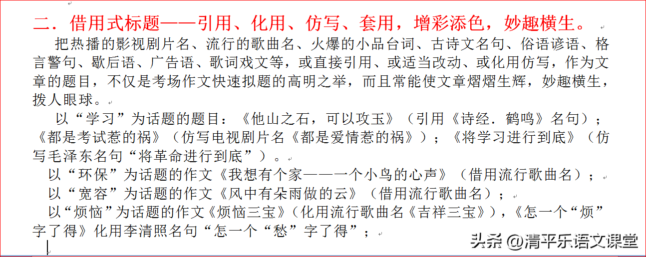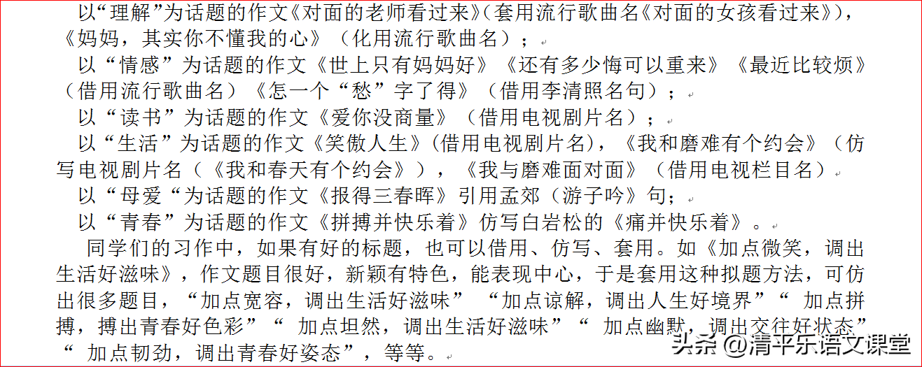 近年中考,话题作文、材料作文居多, 要求自拟题目。考场作文拟题技巧越来越重要。