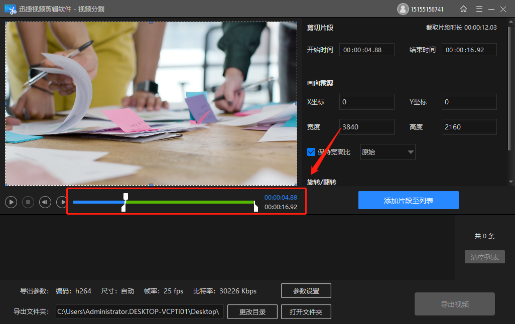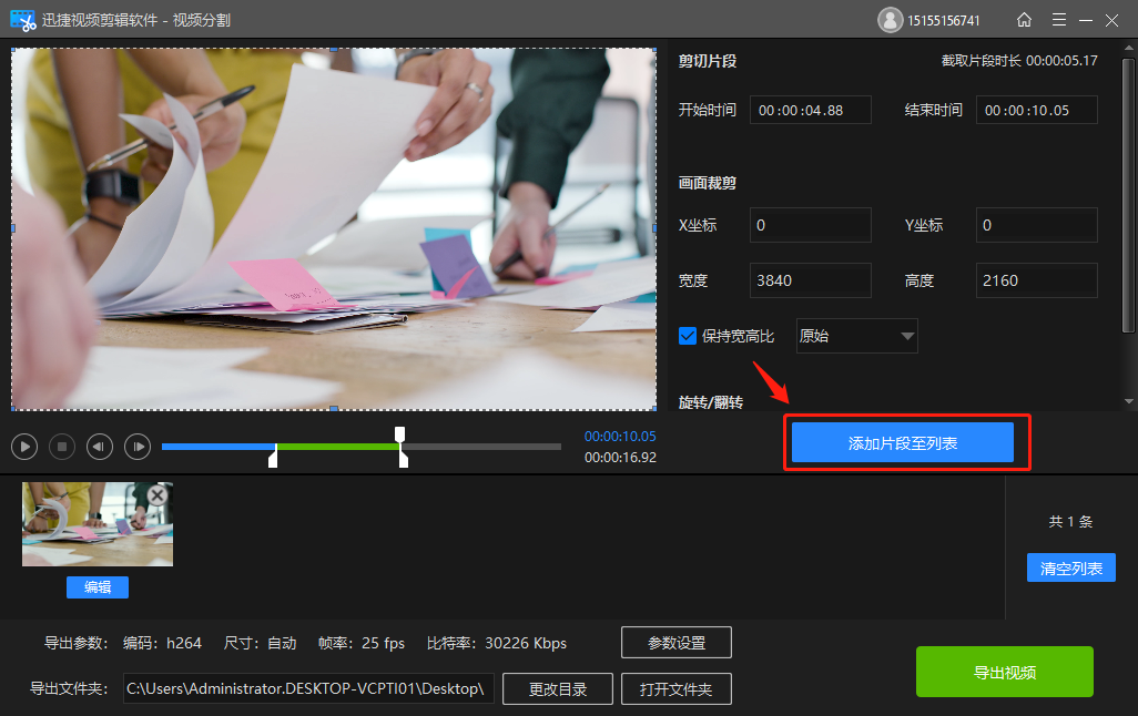 第四步:我们选择好想保留的部分之后,我们就可以点击【添加片段至列表】了,这时候我们想保留的部分就会保留在下列的列表中了。
