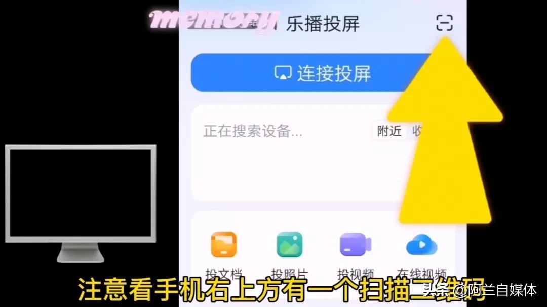 第二种方法就是软件投屏,需要我们在手机上和电视上同时下载“手机投屏”或者“乐播投屏”等投屏软件,然后我们把它同时打开,注意看手机右上方有一个扫描二维码,我们把它打开,然后我们对准电视上的二维码进行扫描,立刻就投屏成功了,很方便的。