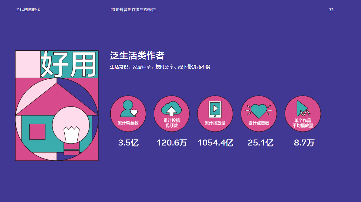 全民创意时代,抖音火遍大街小巷!这份报告中,整理了2019年抖音平台上创作者的各种数据报告,内容主要包括6个方面: