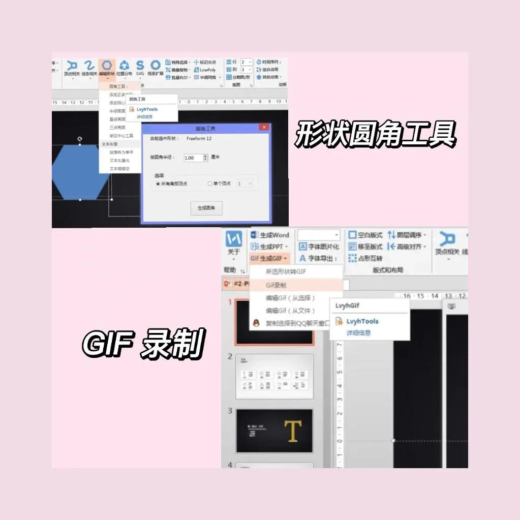 OK插件是上边两个插件不同功能的一个合集了,很多操作特别方便,比如一键图片填充形状,一键转图,一键插入全屏矩形,还有GIF工具,图片处理功能特别强大,堪称PPT中的PS了。