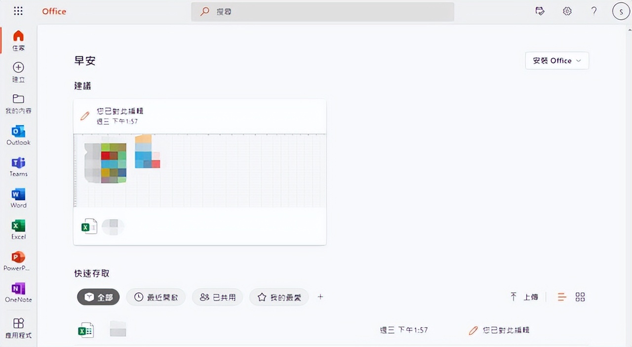 登入后会看到如下画面,直接从左侧点选 Word、Excel、PowerPoint 等应用程式开启,例如在新增 Word 时会有新增空白文件、一般笔记、APA 样式报告和高级版模板等选项。 Microsoft Office 网页版也可以开启电脑里的文件,点击右边「上传/建立」找到要开启的文件即可。