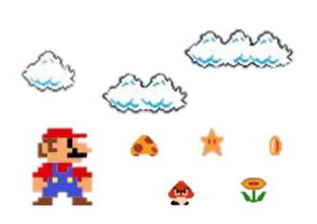 ❷ 接着我们构想出一个基本的二维码的布局,然后截取出我们需要动起来的素材元素:马里奥、小蘑菇、白云、星星、金币等等。