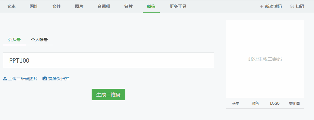草料二维码是洁洁平时用的最多的一个平台,它可以快速把文本、网址、文件、图片、音视频、名片、微信号转化为二维码的形式。