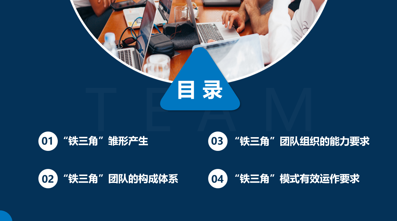 Hello大家好,我是帮帮。今天跟大家分享一张铁三角团队模式相互信任承担PPT模版,完整内容演示课件,万能套用。