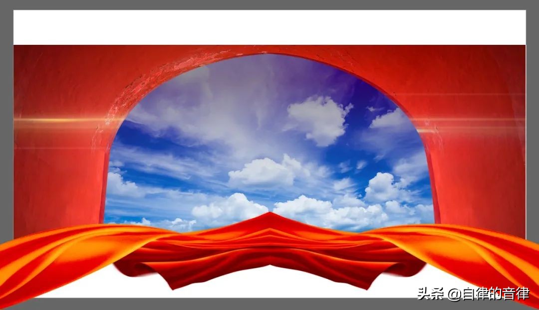 再往后,我们注意到飘带与拱门的边界,似乎不太明显。