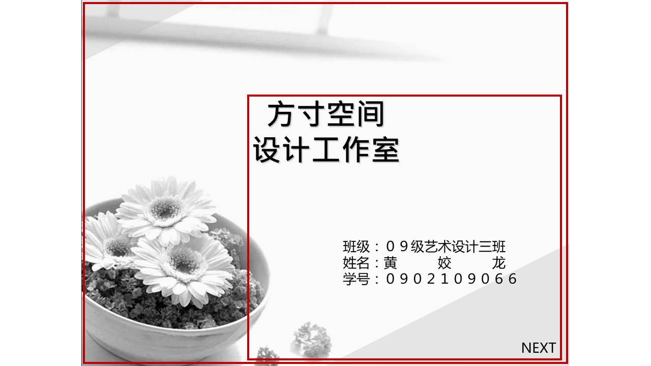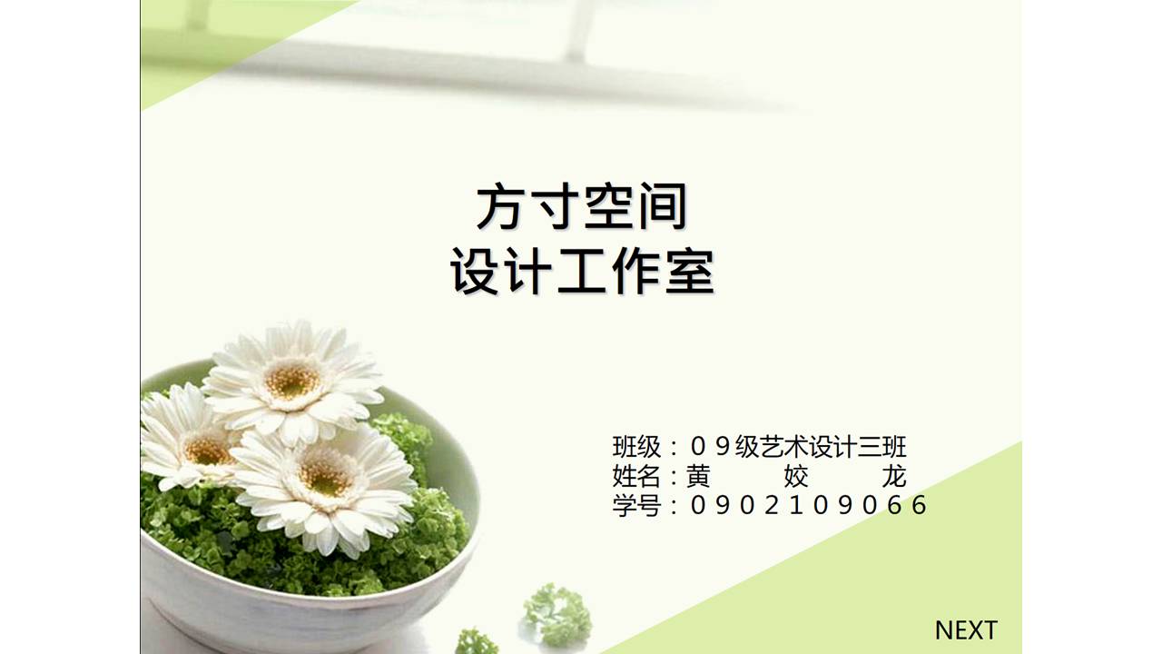 这是一张设计工作室的 PPT 封面,给我的第一印象是,很俗气,尤其是左下角那朵小花,简直俗已入骨。