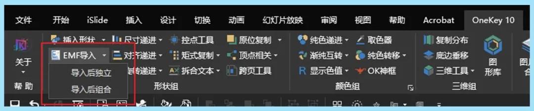 “插入形状”按钮下面就是“EMF导入”按钮,也包括2个功能: