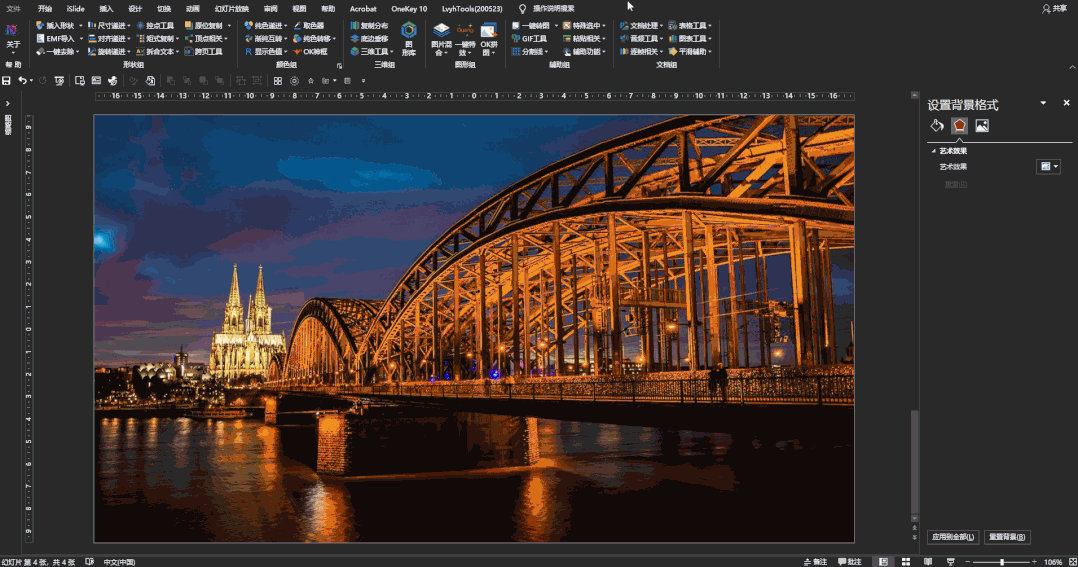 那么现在有了OK插件,该如何操作呢?直接选择“形状”组中的“插入形状”按钮,选择第一项的“全屏矩形”: