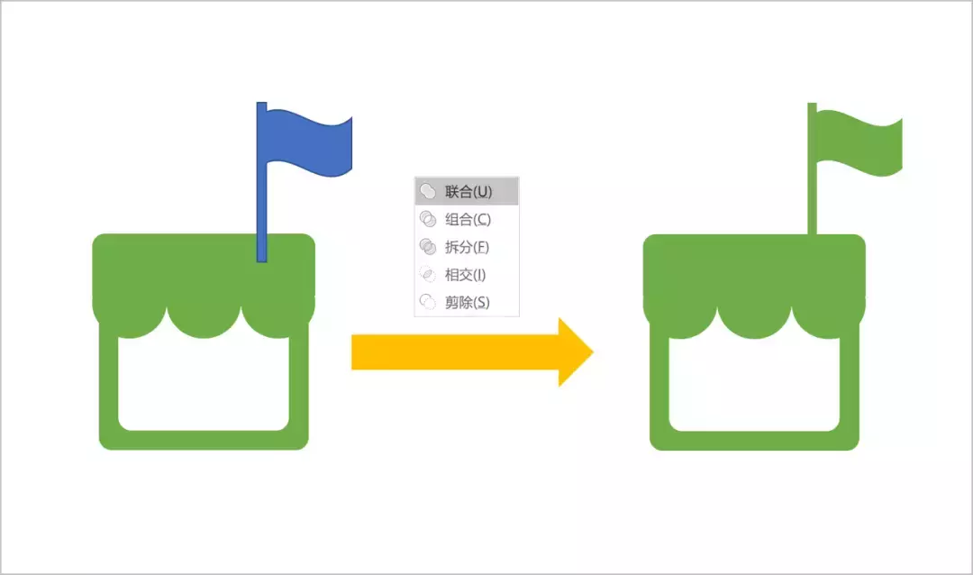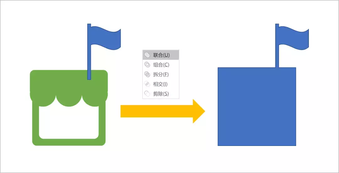 参与合并形状的不是图标的填色部分,而是与图标的框体等大的一个矩形,这显然是我们不想看到但又无能为力的事情。