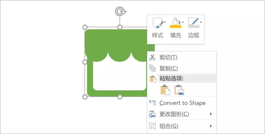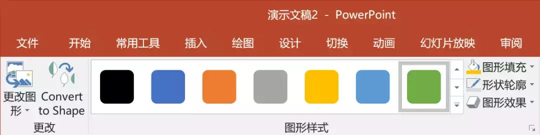 进入「图形工具-格式」选项卡,在选项卡的最左端就能看到转换按钮。