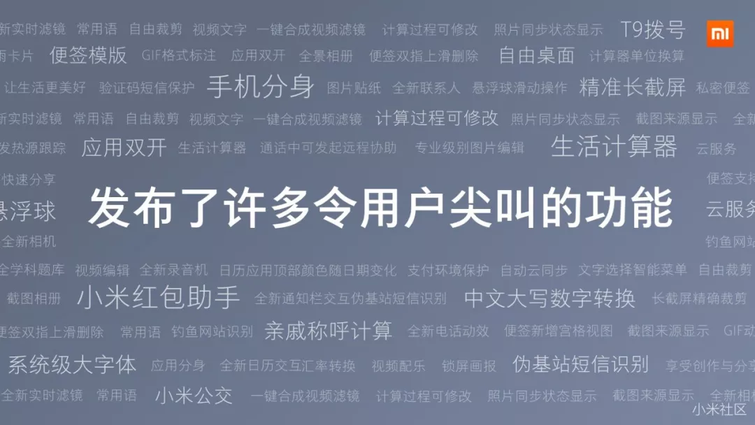 比如下面这个案例,四周的文字云主要是为了表达“许多令用户惊叫的功能”。