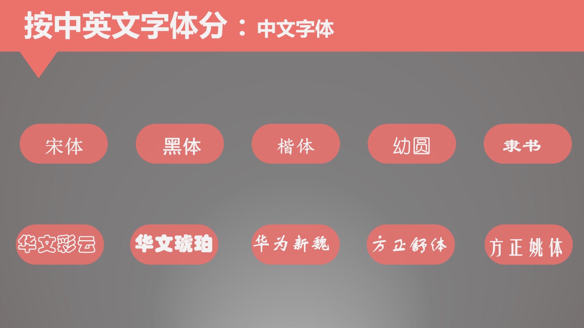 ②使用场合:很少用于正文,在ppt设计中也常用于装饰,在实际生活中多用于名片,如果想用ppt设计名片,可以考虑使用圆体做主要内容。