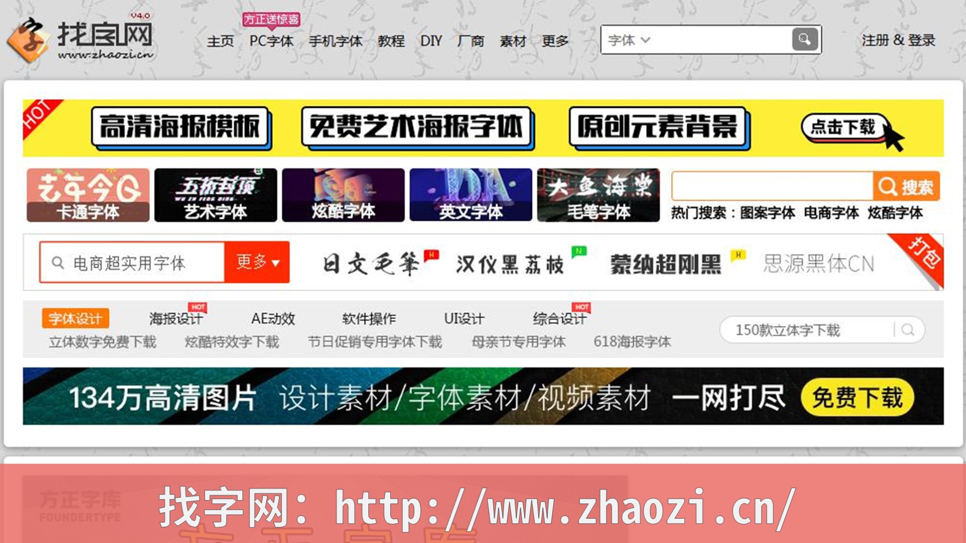 找字网,成立于2001年5月,是专注于提供中英文字库及相关厂商、人物、工具、教程、设计素材等相关信息的一家专业型网站。其网站字体种类丰富,基本上能够找到适用于各类设计的字体。