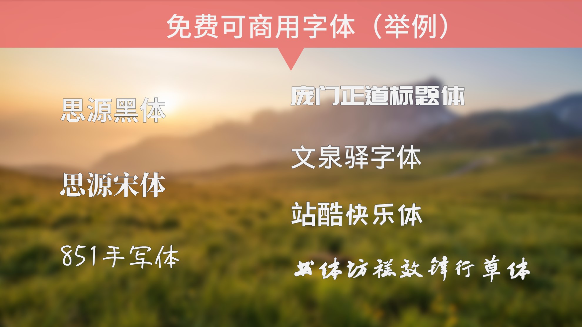 当然可免费商用的字体也不仅仅这些,在这里只是大概列举一些。