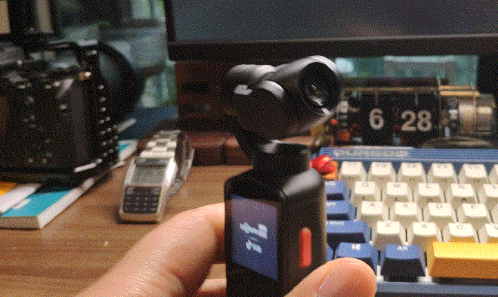 橙影Morange智能Vlog相机在开机之后会有一个自动检测的动作。通过前后左右的转动镜头来检测相机的状态。