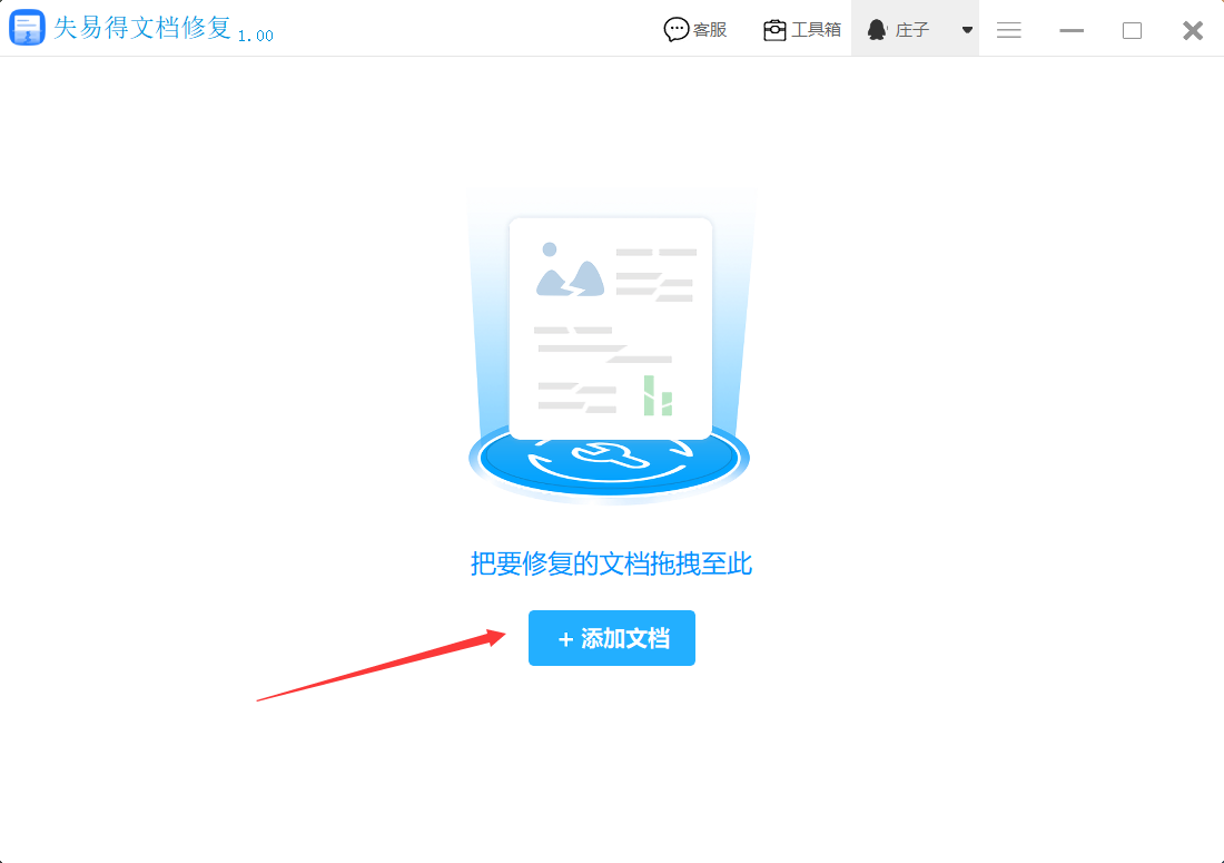 第一步:把下载好的失易得文档修复软件打开,把文档拖进软件内就可以了或者点击“添加文档”。第二步:选中文件,点击“开始修复”进行恢复。