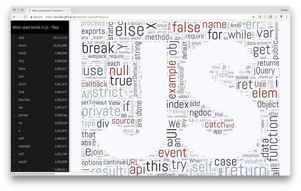 这里保存了来自各套代码库中不同编程语言的对应常用词。GitHub的语言识别功能将这套库的大部分内容视为C++。这样的结果不无道理,毕竟其中相当一部分语言的诞生是受到C/C++的启发: