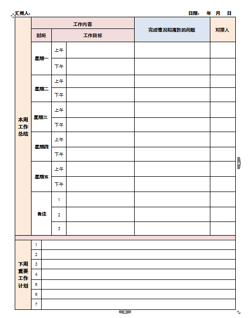 メ单页式word总结报告,周总结文案材料,大家快速填充文本框内容,快速出稿。メ