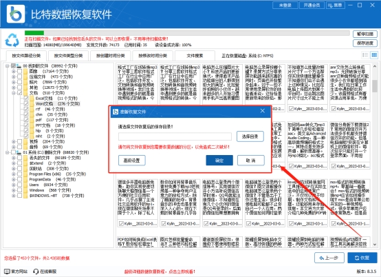 扫描过程中勾选自己想要的文件数据,点击【恢复】,选择保存位置即可。