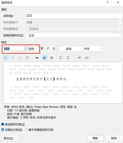 直接修改样式表中【正文】的样式。